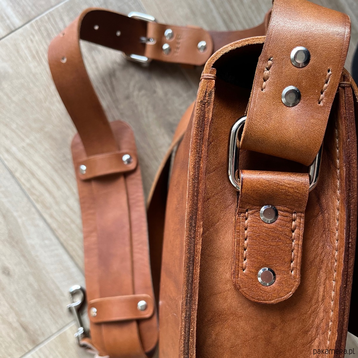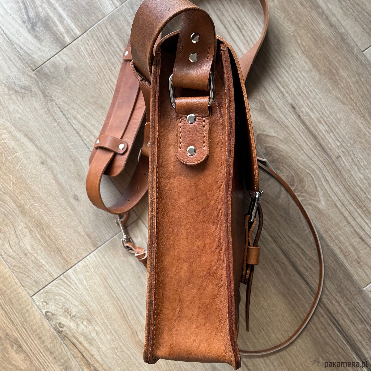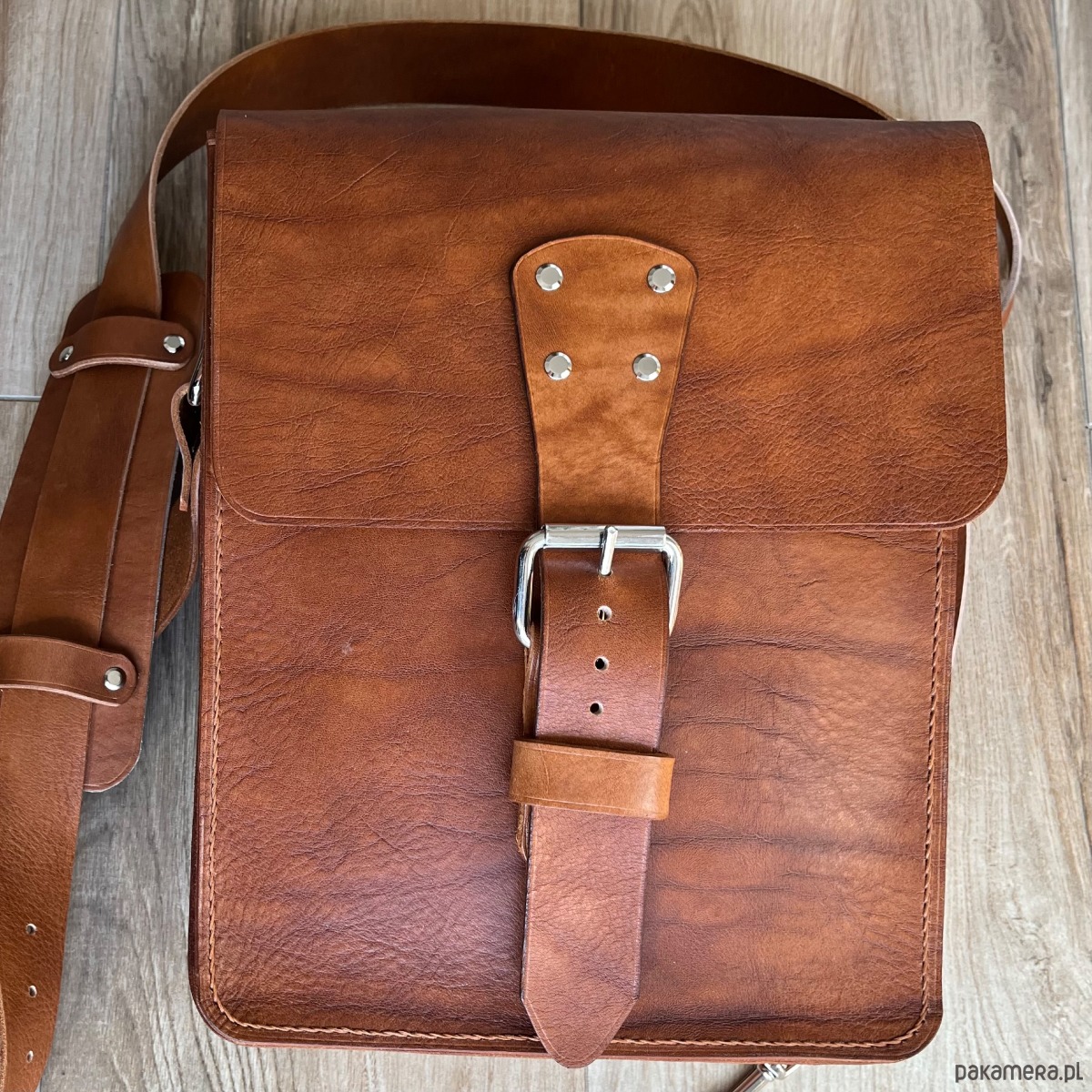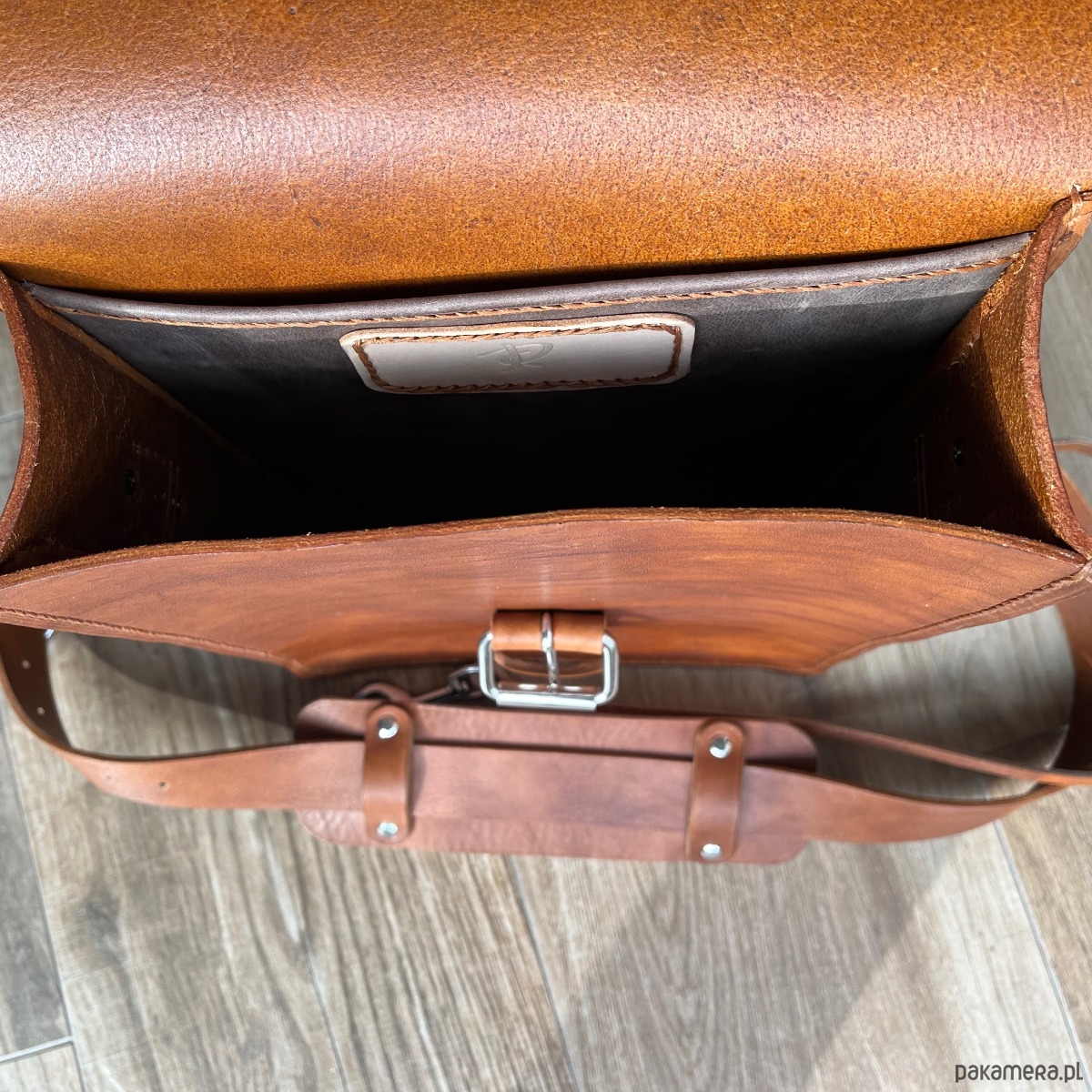 Torba wykonana ze skóry bydlęcej garbowanej roślinnie.