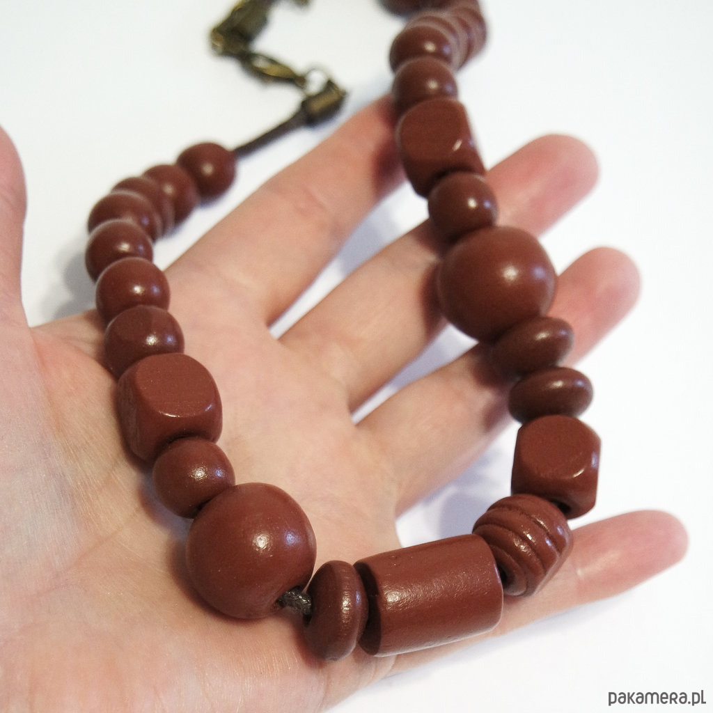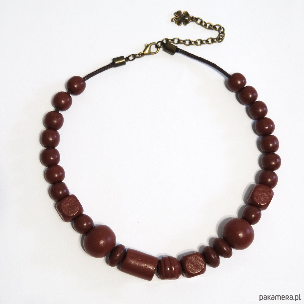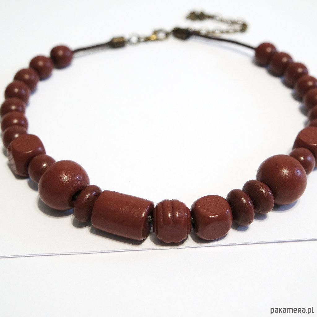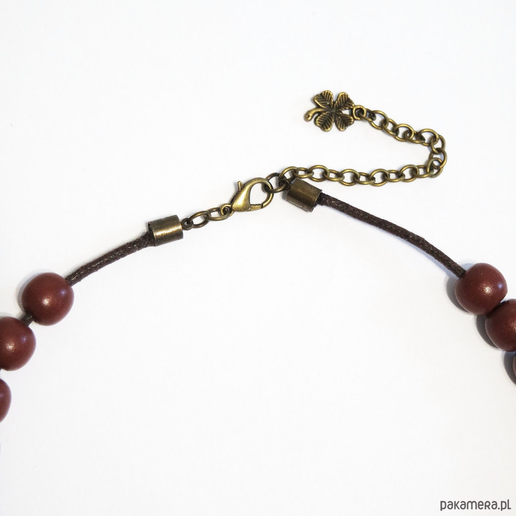 Naszyjnik wykonany z koralików drewnianych nawleczonych na woskowany sznurek.