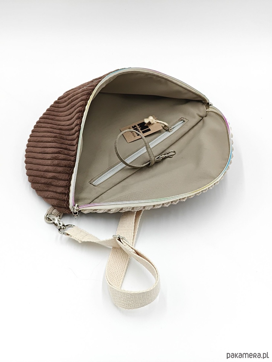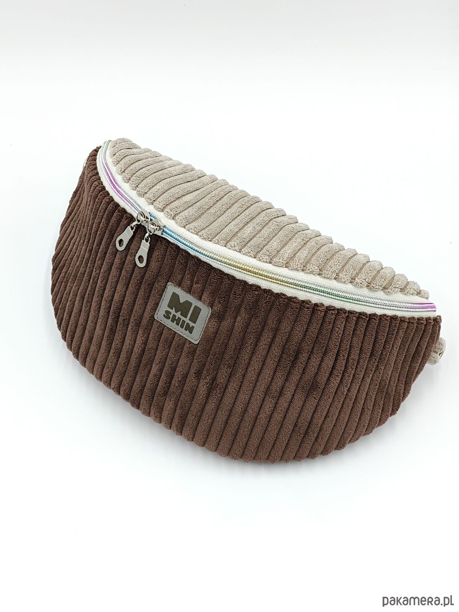 Brązowo - beżowa nerka z grubego sztruksu