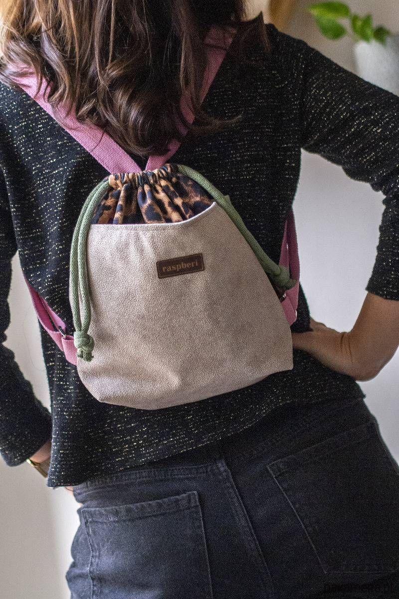 Brązowo-beżowy workoplecak mini panterka