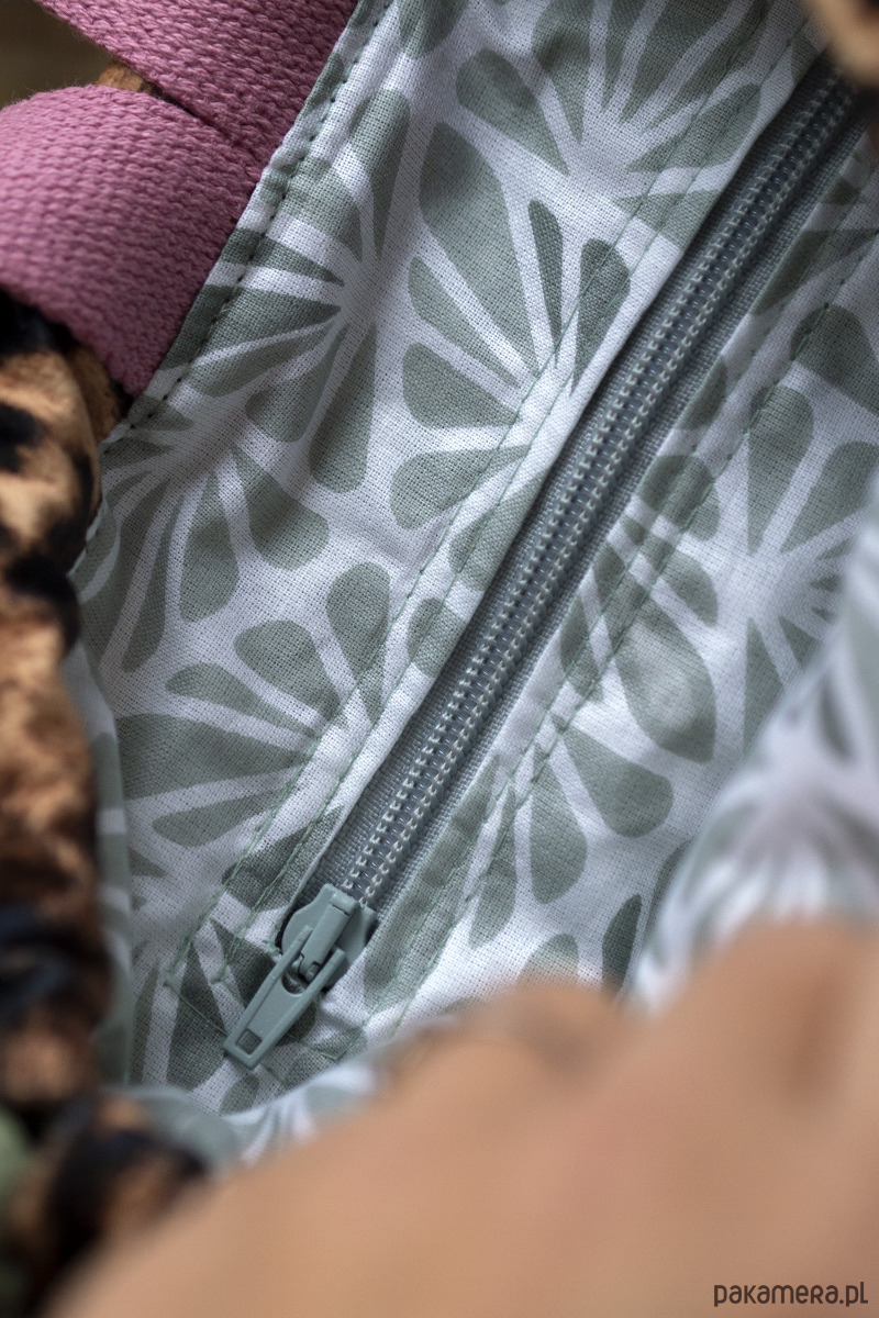 W środku kieszonka zapinana na suwak.