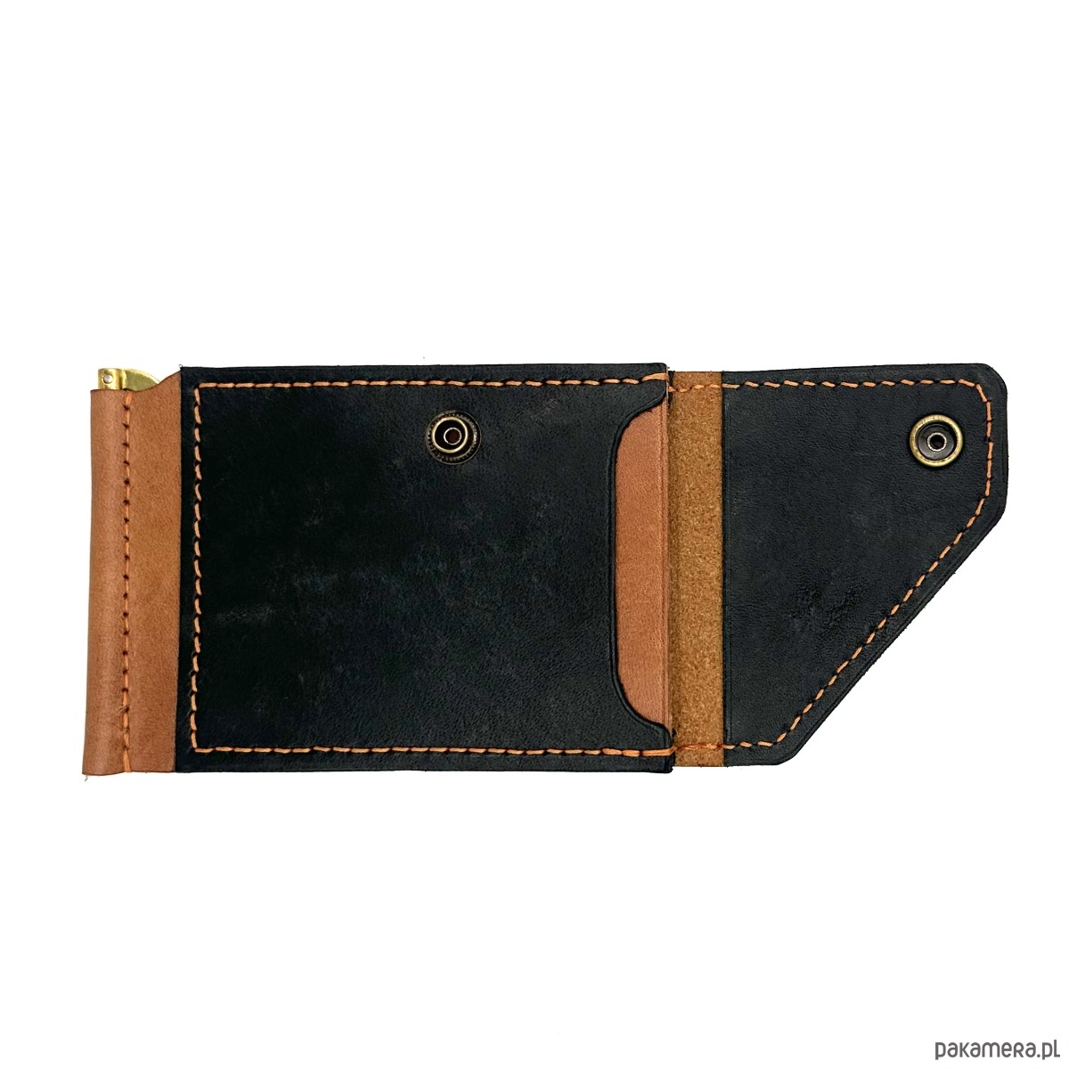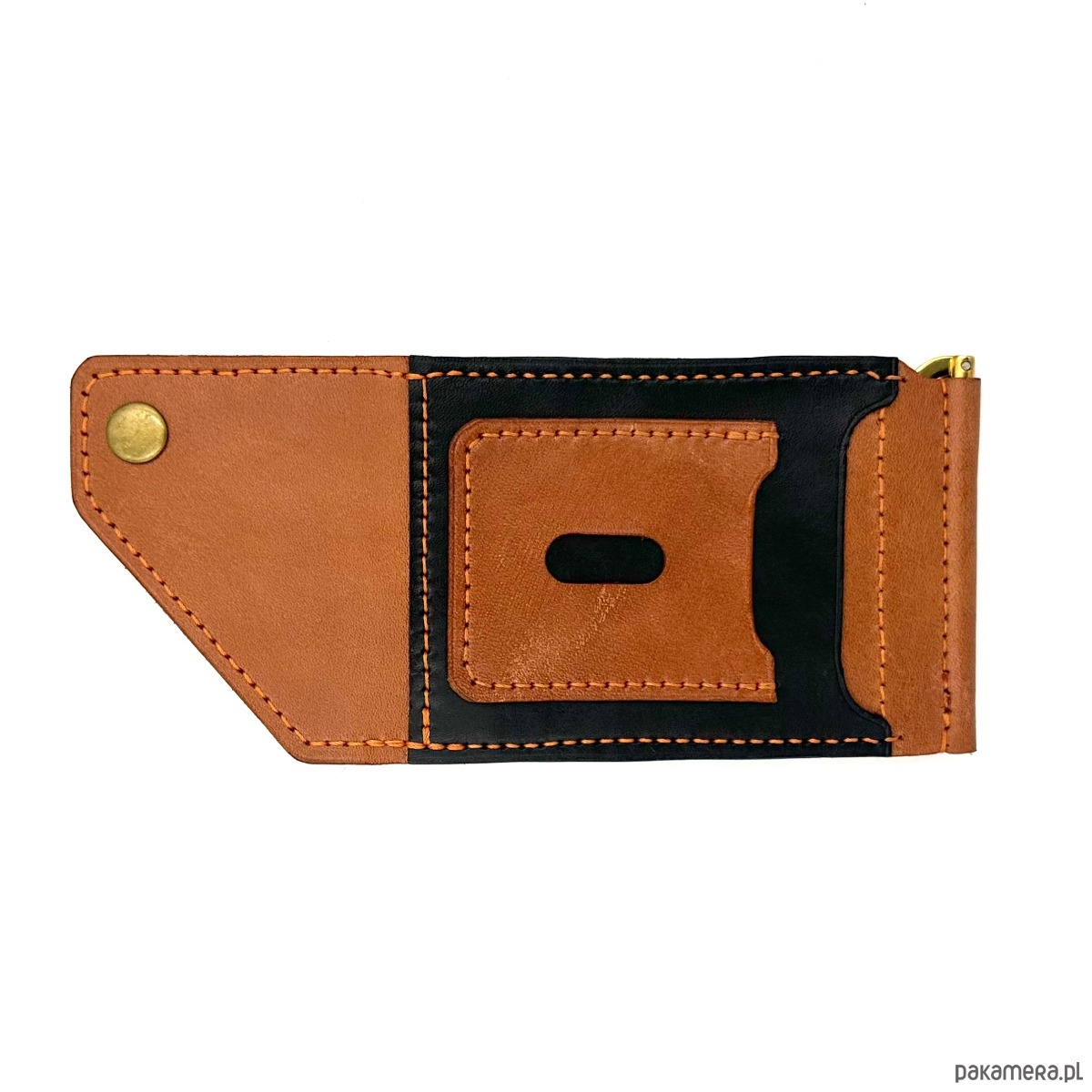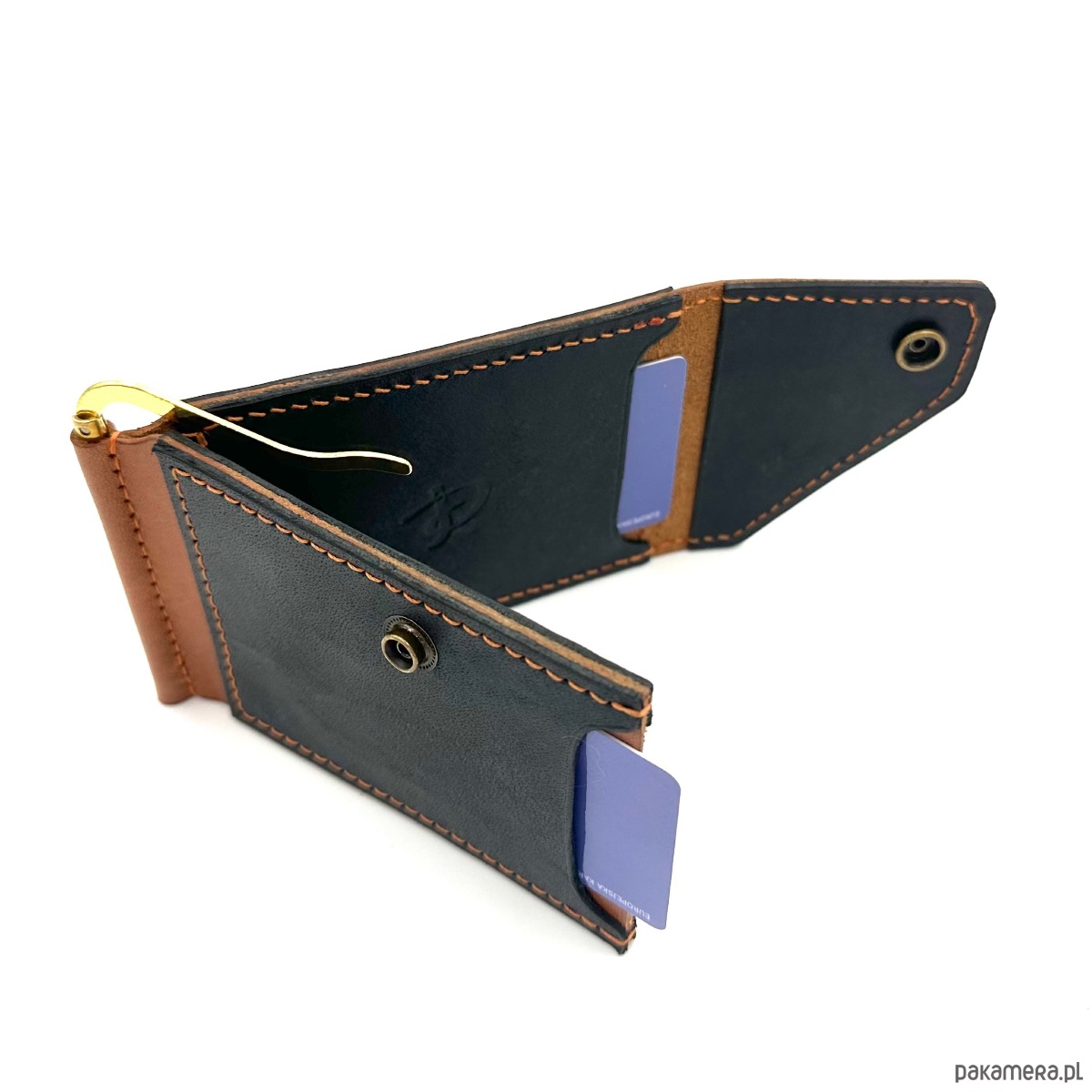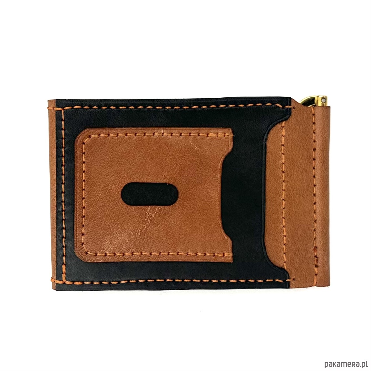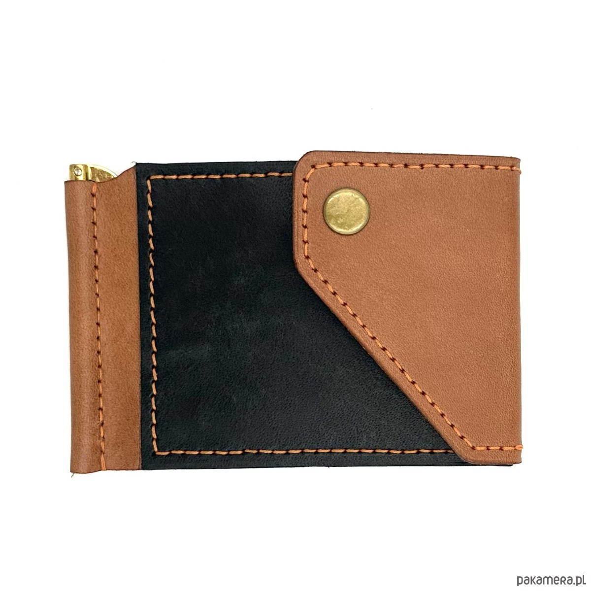 Brązowo-czarny portfel na klips ze skóry ręcznie uszyty.