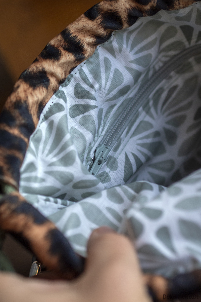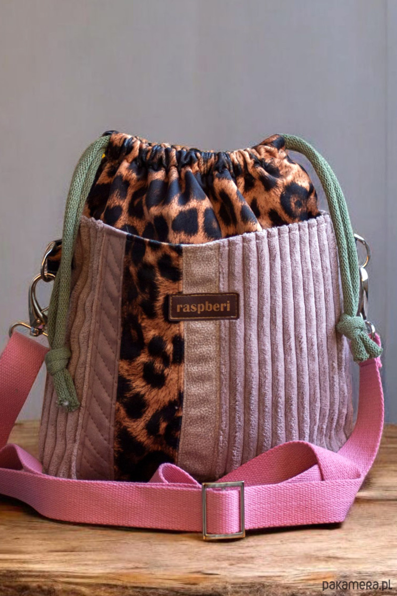 Brązowo-różowa patchworkowa listonoszka z kominem panterka