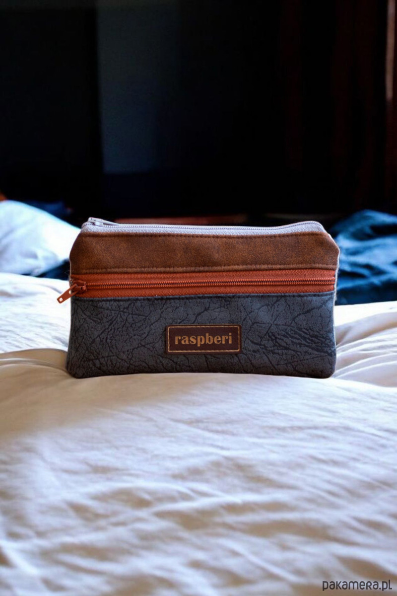Prosty wodoodporny portfel w kolorze brązowo-szarym.