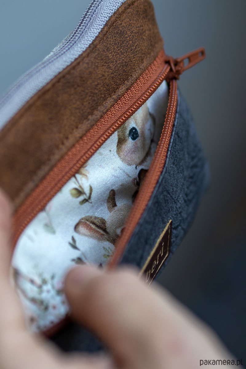 Idealny na karty płatnicze oraz pieniądze. Zapinany na suwak, z przodu kieszonka na drobne, w środku bawełniana podszewka i kieszonka na suwak.