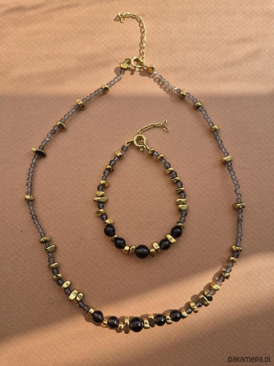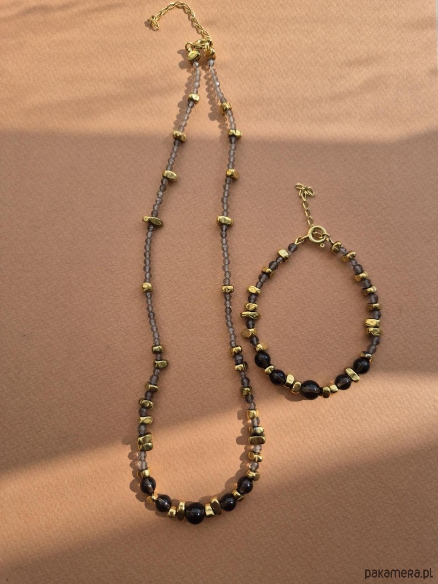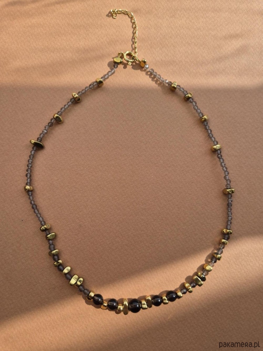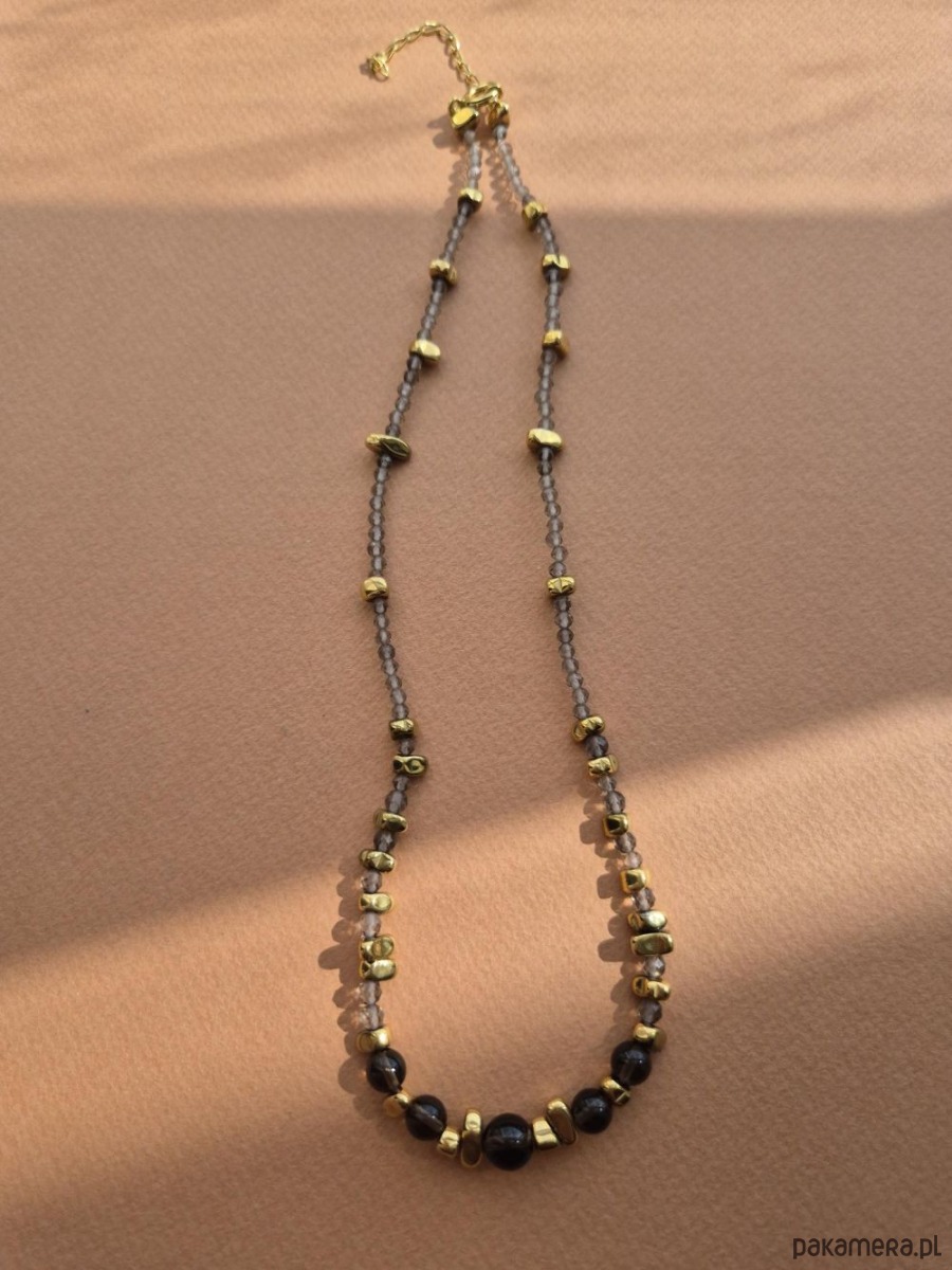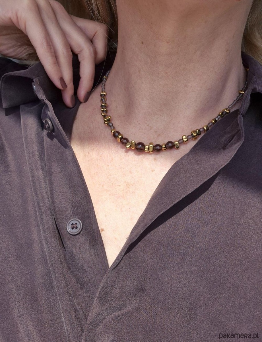 Brązowo-złoty naszyjnik z kwarców dymnych, złotych hematytów