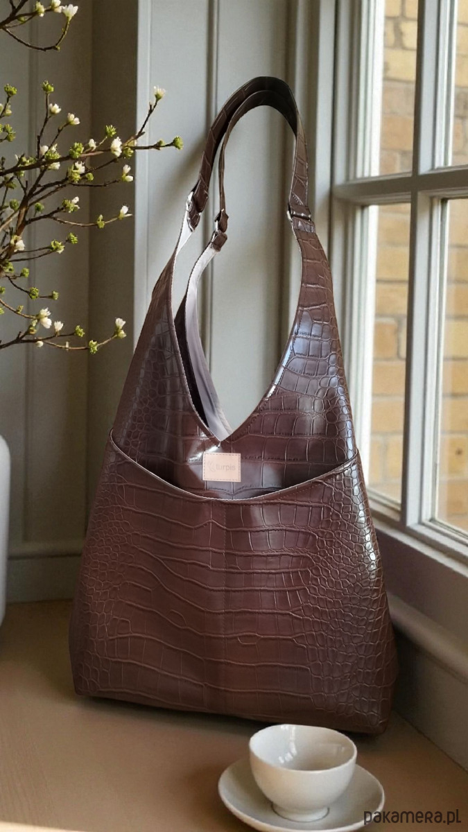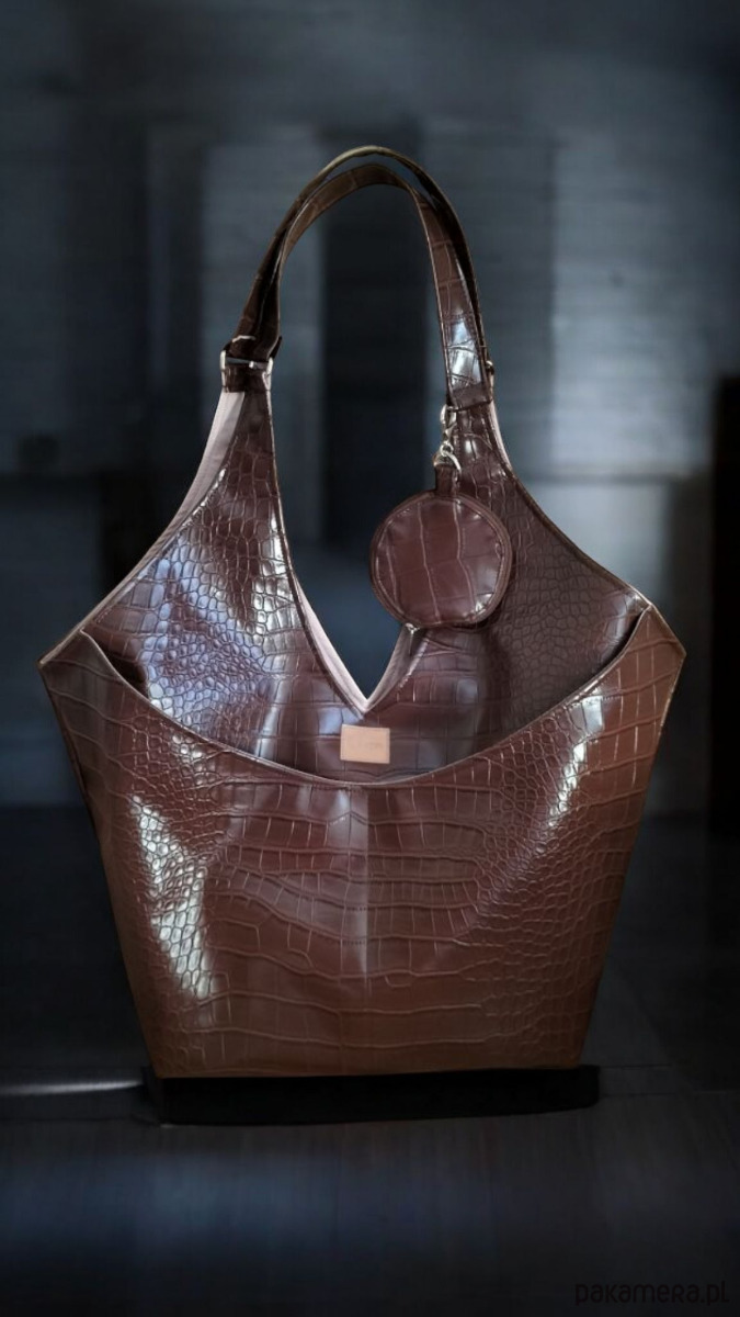 Torba na ramię uszyta z eko skóry - brązowego krokodyla.