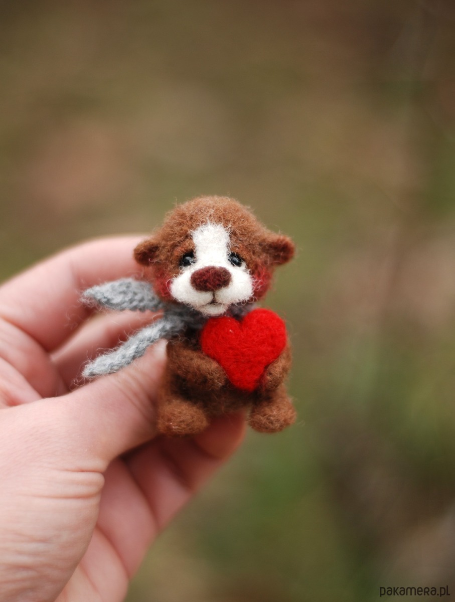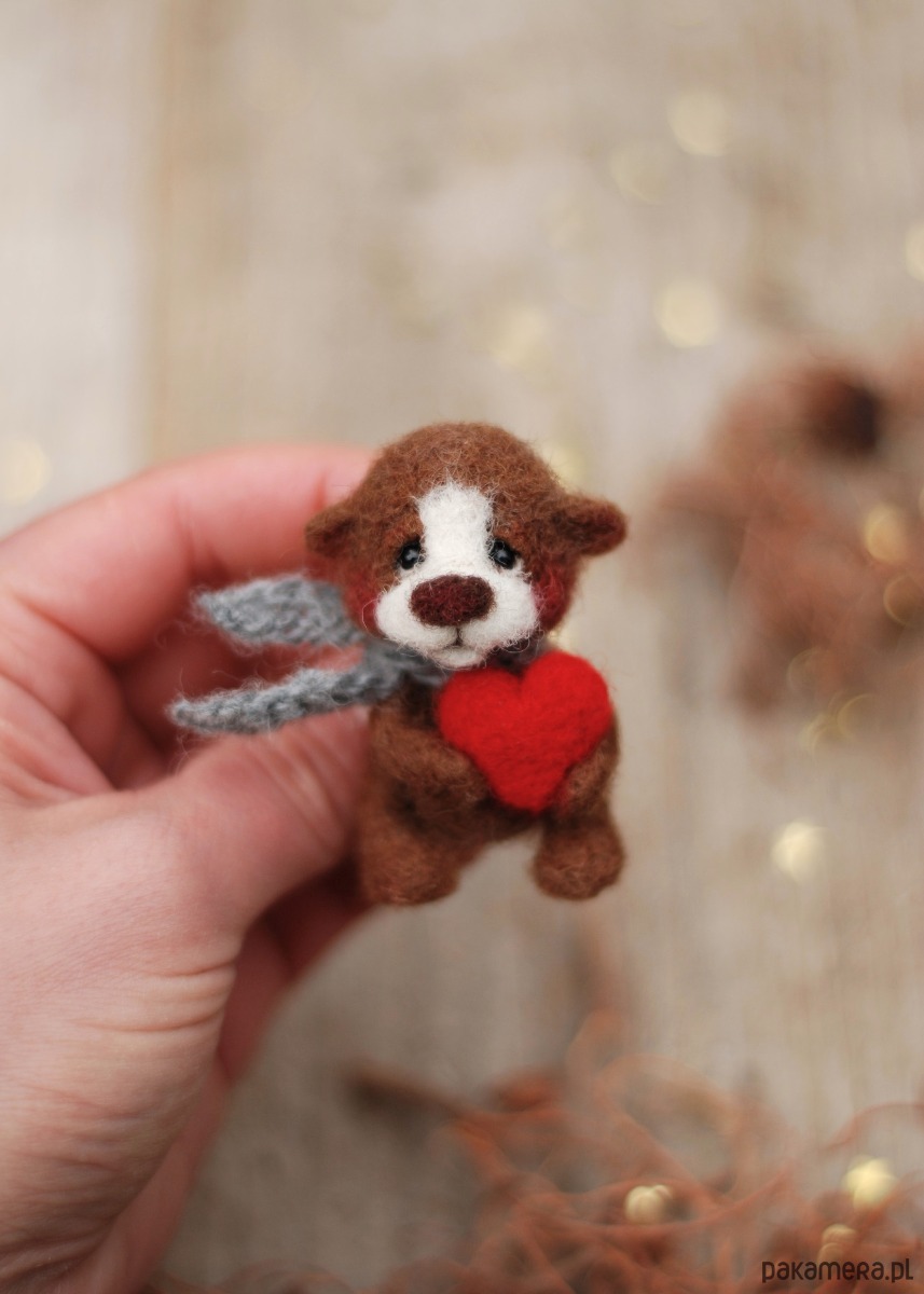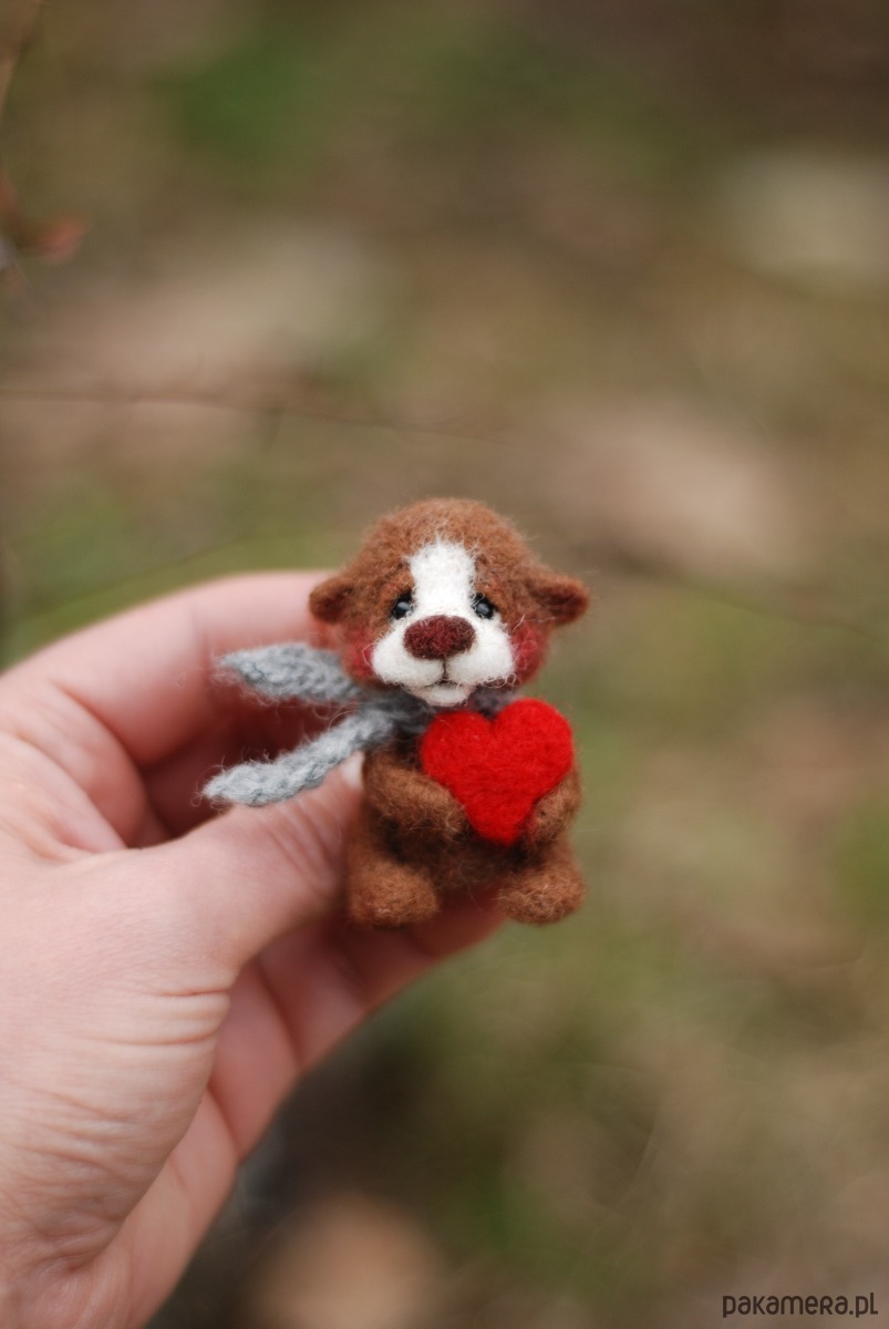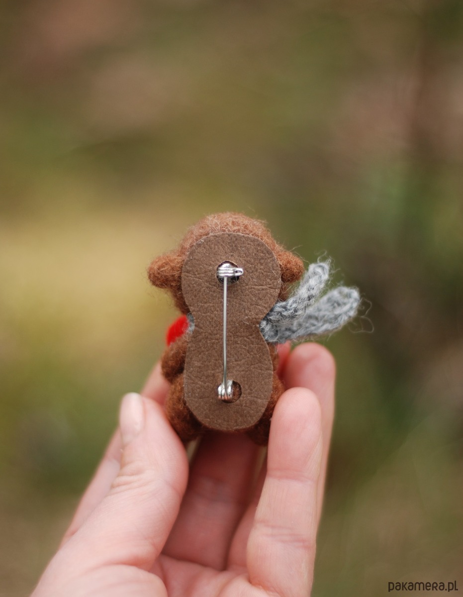 Broszka- Miś-wykonana metodą filcowania na sucho z wełny merynos.