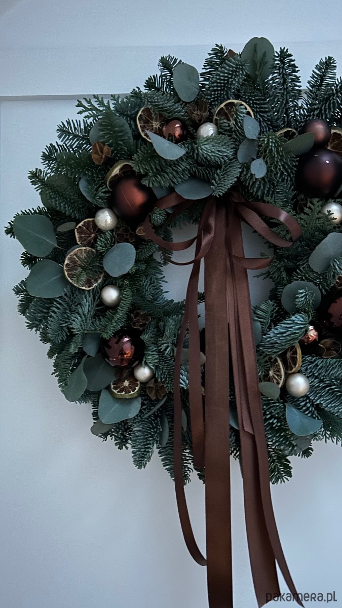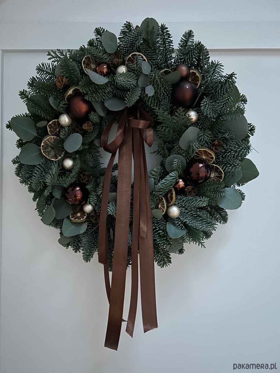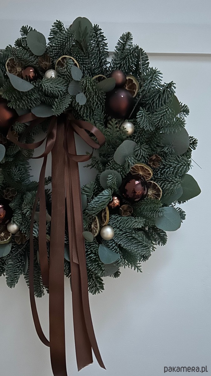 Brązowy NATURALNY Wianek Bożonarodzeniowy na drzwi