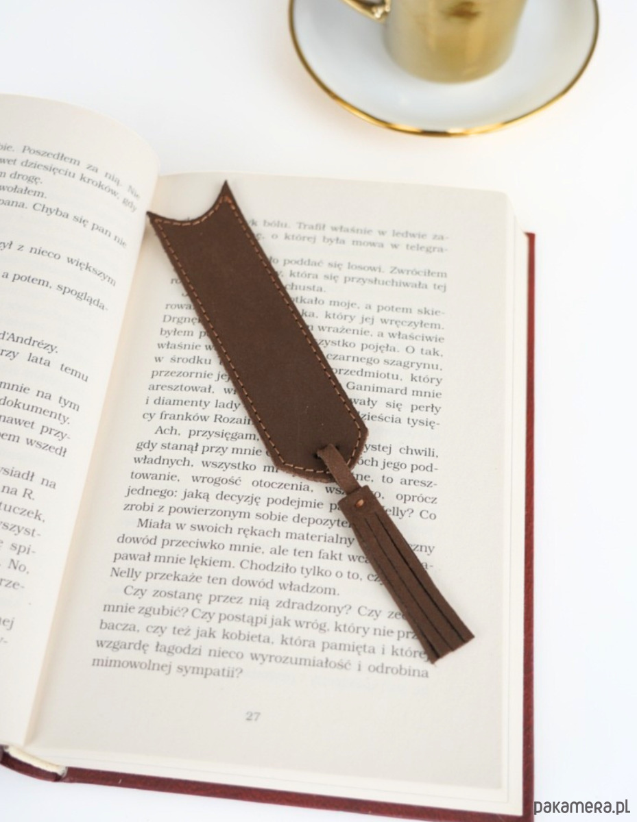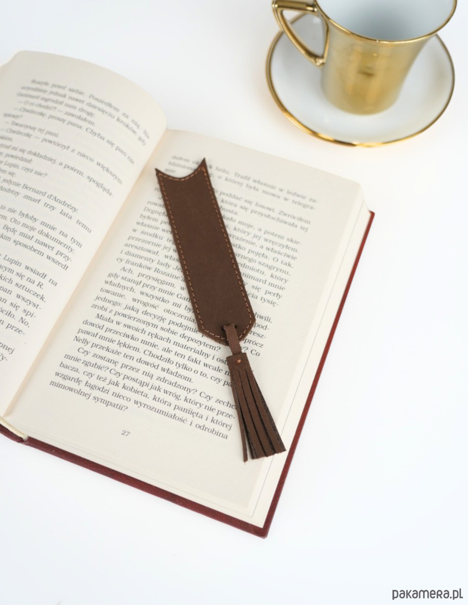 Elegancka zakładka do książki ze skóry naturalnej brąz