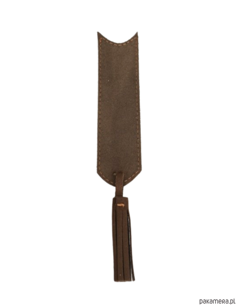 -Brązowa zakładka z nubuku – miękka, matowa, o przyjemnej w dotyku powierzchni.