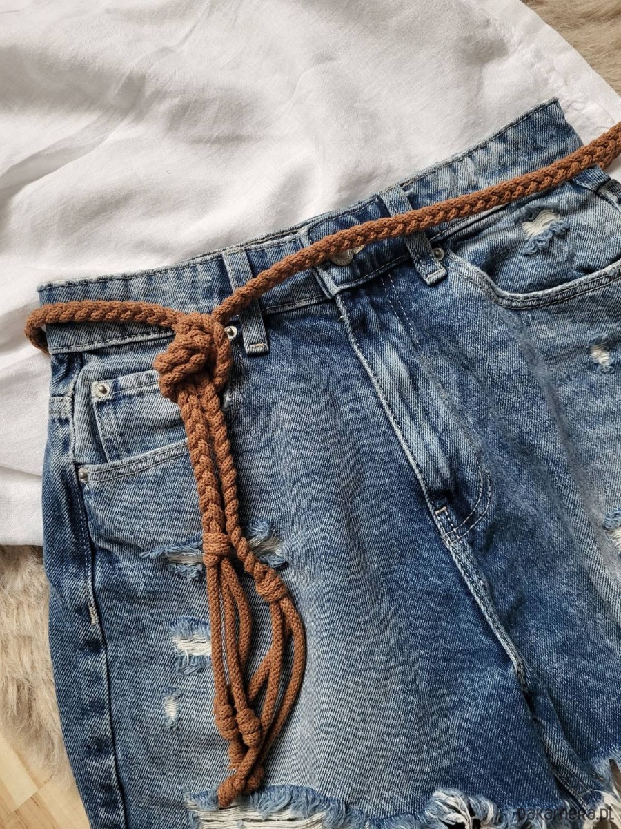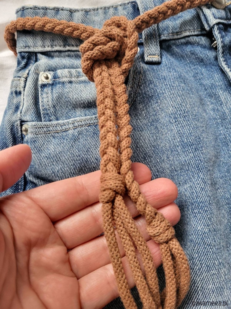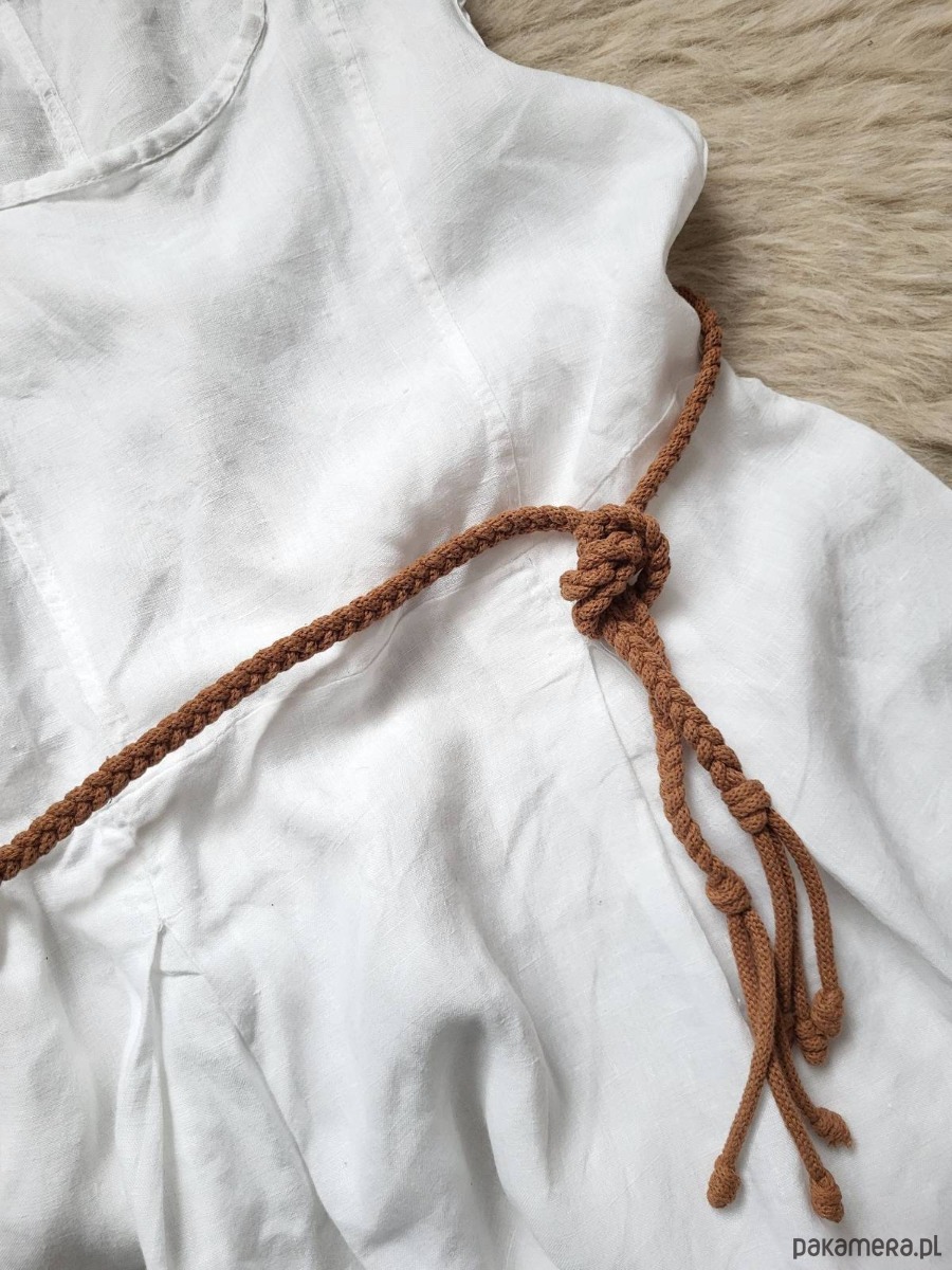 Brązowy Pasek do sukienki/tuniki/swetra wiązany cienki warkocz