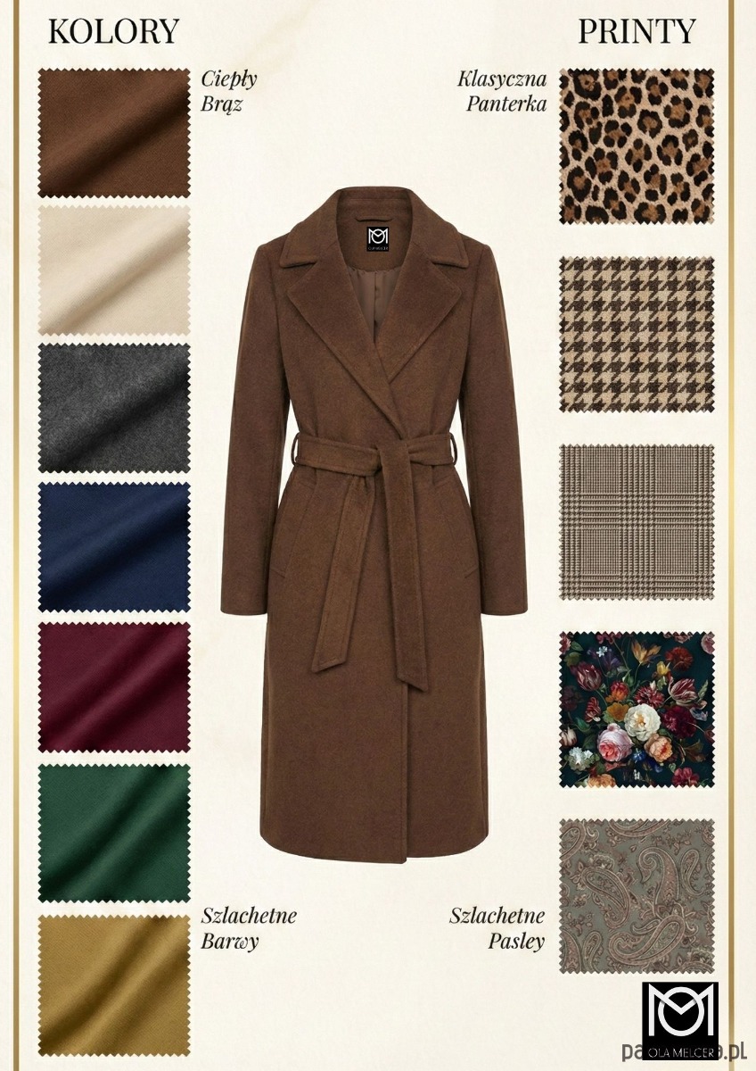 Długi płaszcz z alpaki w głębokim, brązowym odcieniu otula jak spokojny jesienny poranek. Lekki, a jednocześnie przyjemnie grzejący, zachwyca miękkością naturalnego włókna i subtelną elegancją.