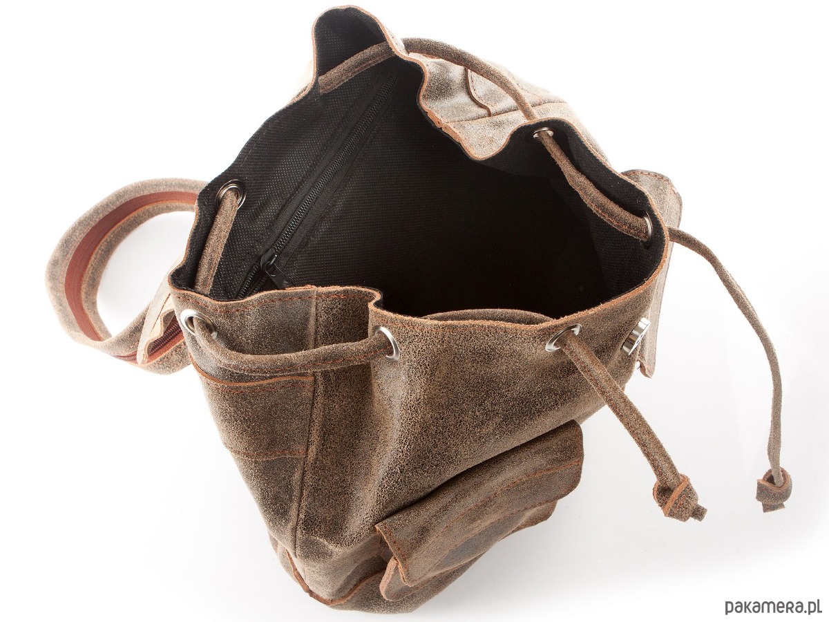 - komora główna, zamykana klapką z magnesem i dodatkowo zabezpieczona sznurowanym rzemykiem - to pojemna przestrzeń mieszcząca gabaryty dużych książek