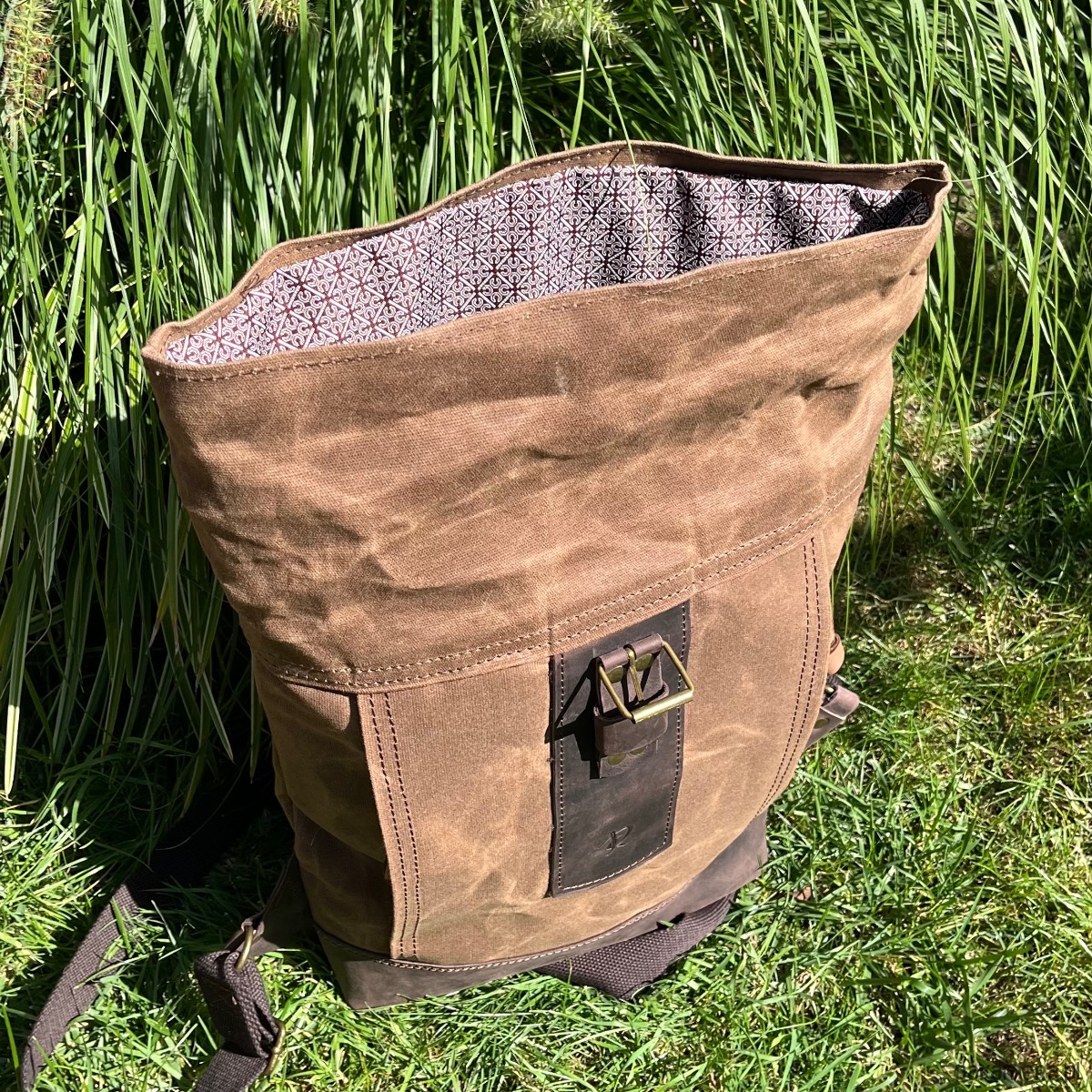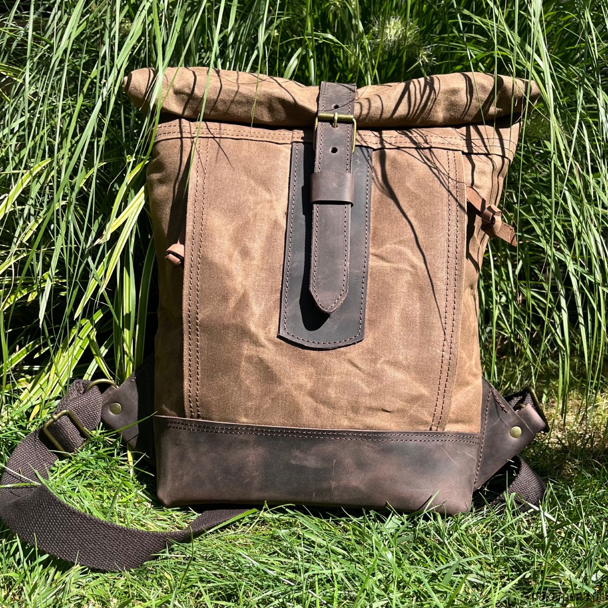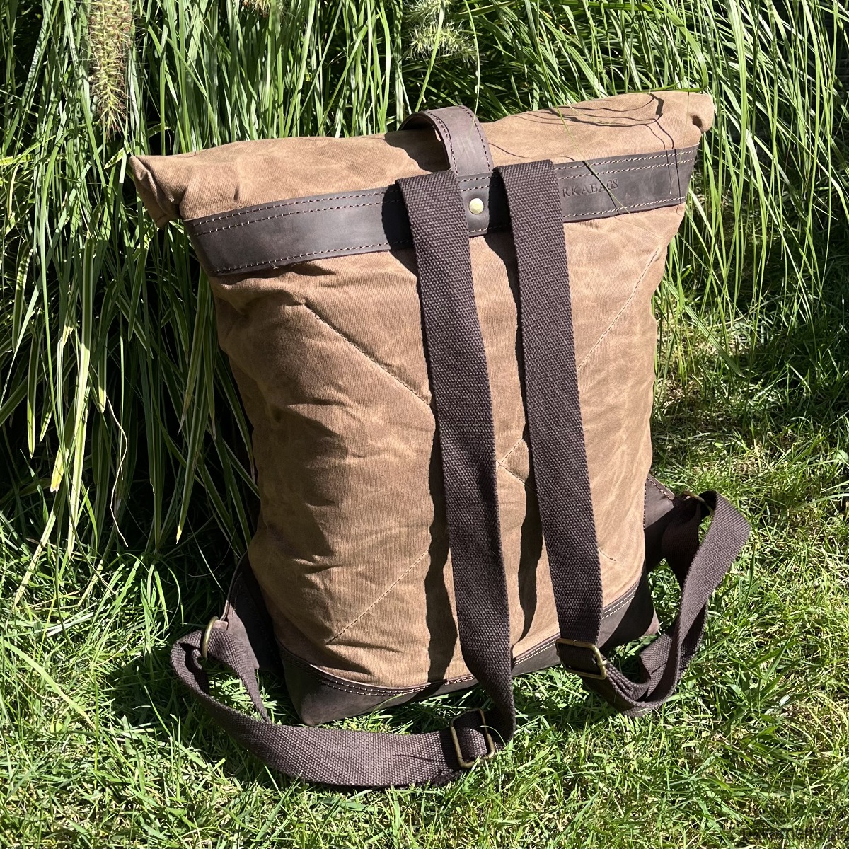 Klasyczny rolowany plecak w stylu Vintage to połączenie woskowanej bawełny Wax Cotton i skóry Crazy Horse.