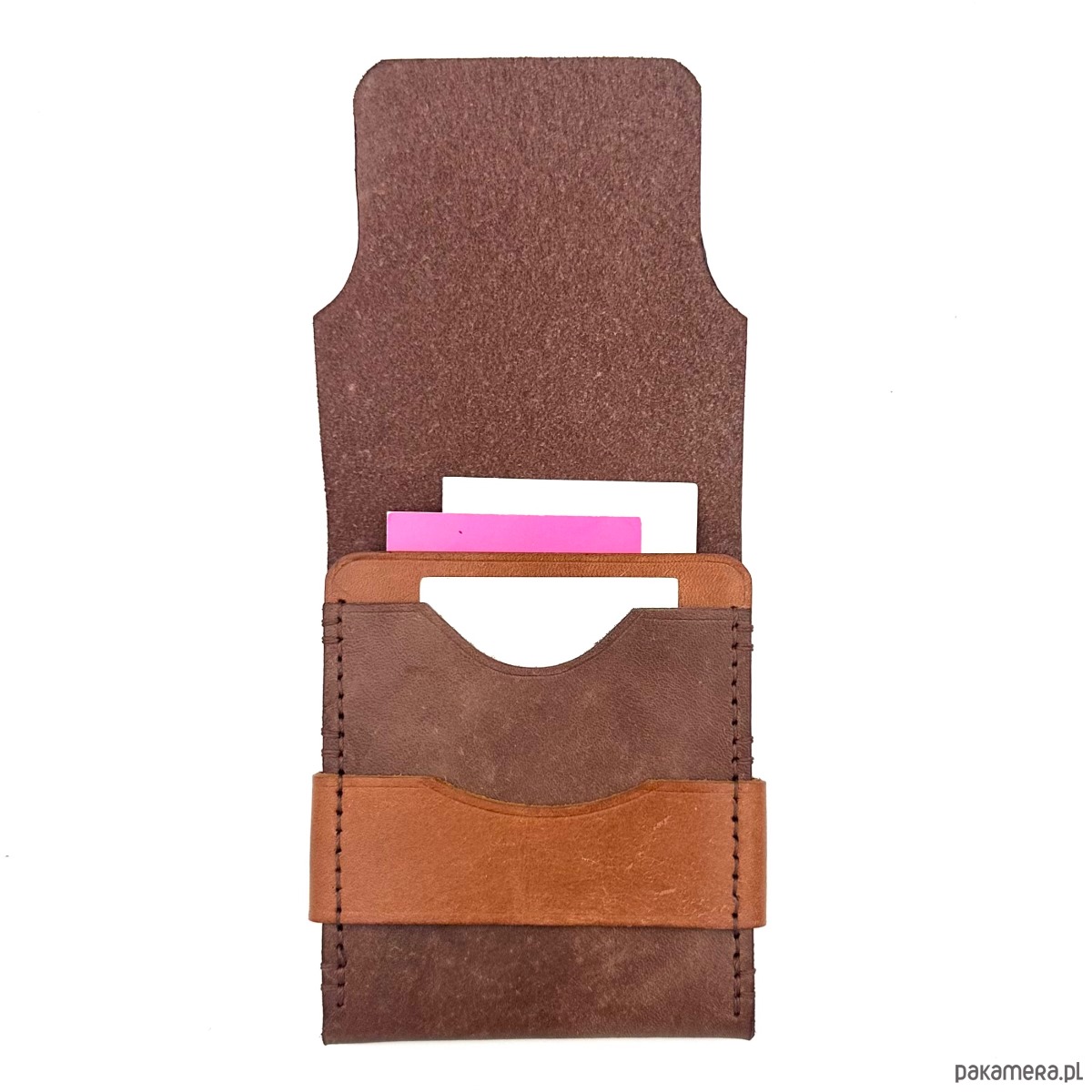 Dobrze trafiłeś! Ten brązowy portfel w dwóch odcieniach to małe dzieło rzemieślniczej sztuki, stworzone z pasją i dbałością o każdy detal. 🖤✂️