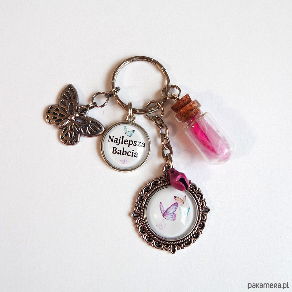 Niezwykły brelok z naszymi autorskimi grafikami, szklaną fiolką, mini dzwoneczkiem oraz zawieszką.