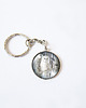 Grafika ukryta w prostym breloczku, pod osłoną przeźroczystego półokrągłego szkiełka.