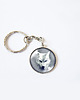 Grafika ukryta w prostym breloczku, pod osłoną przeźroczystego półokrągłego szkiełka.