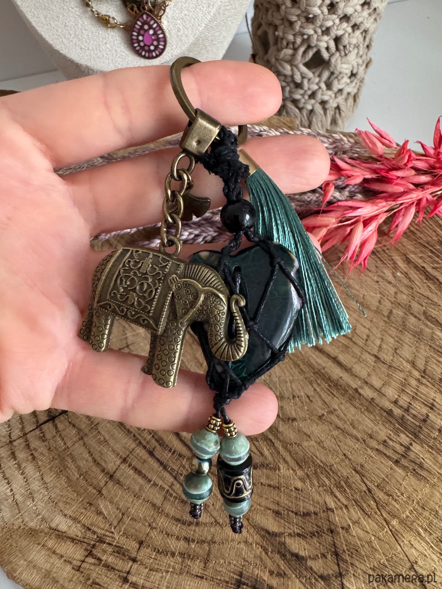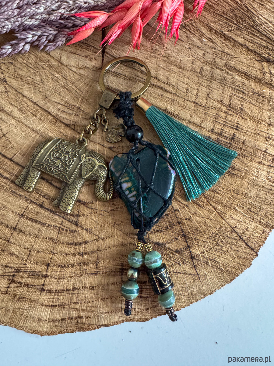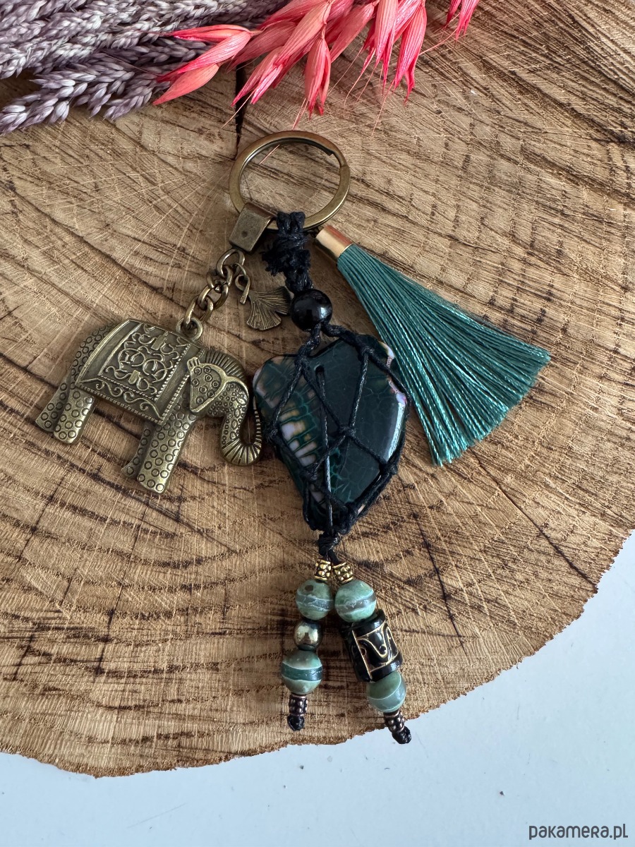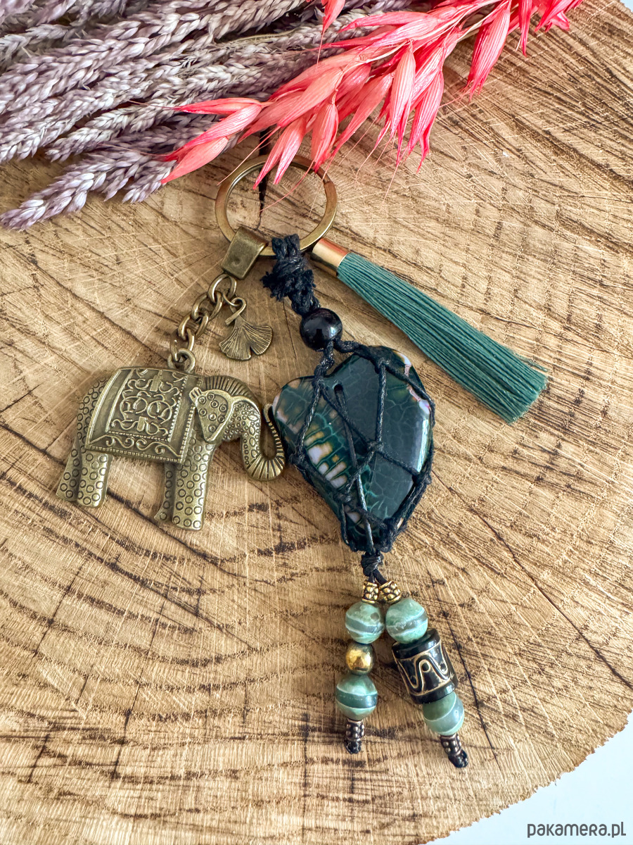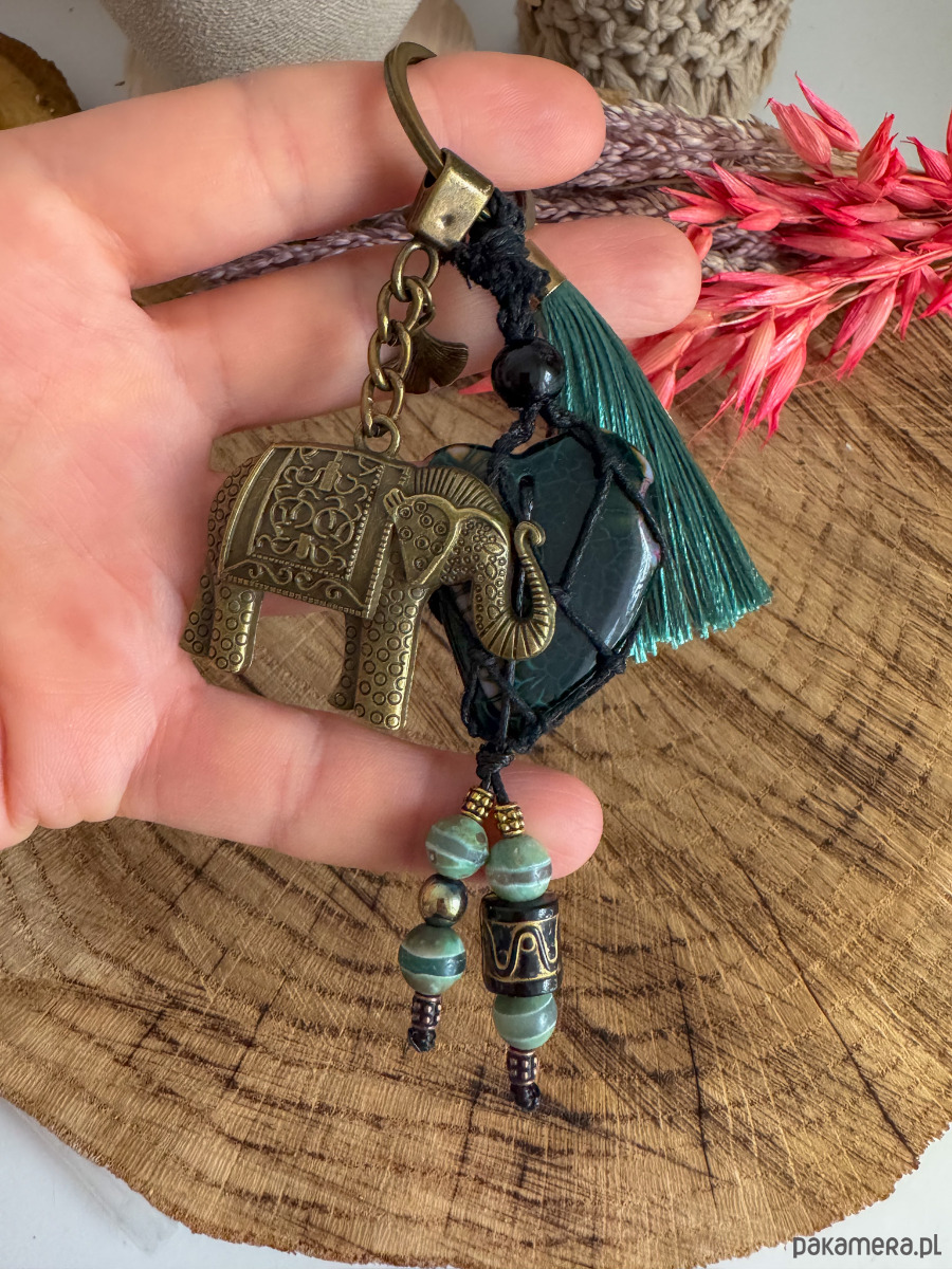 Breloczek brelok do torebki boho agat serce słoń na szczęście