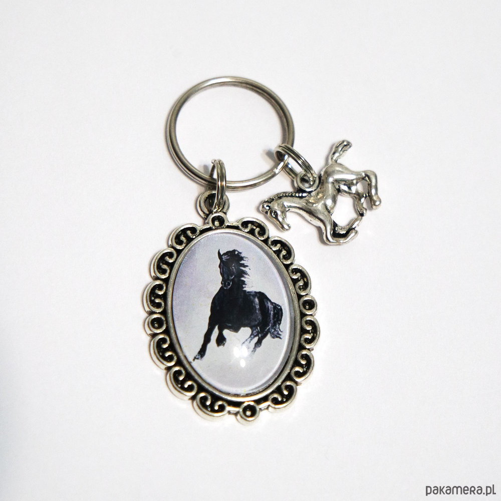 Niezwykły brelok z naszą autorską grafiką oraz malutką zawieszką w kształcie konia.