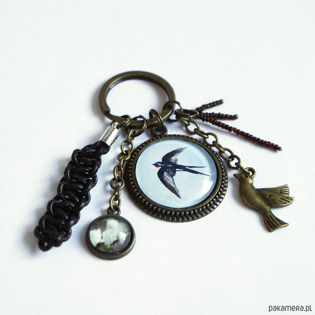 Breloczek - Jaskółka, magnolia, rzemień