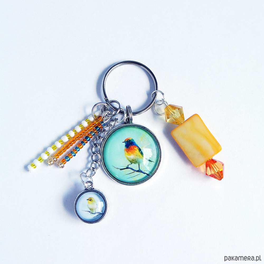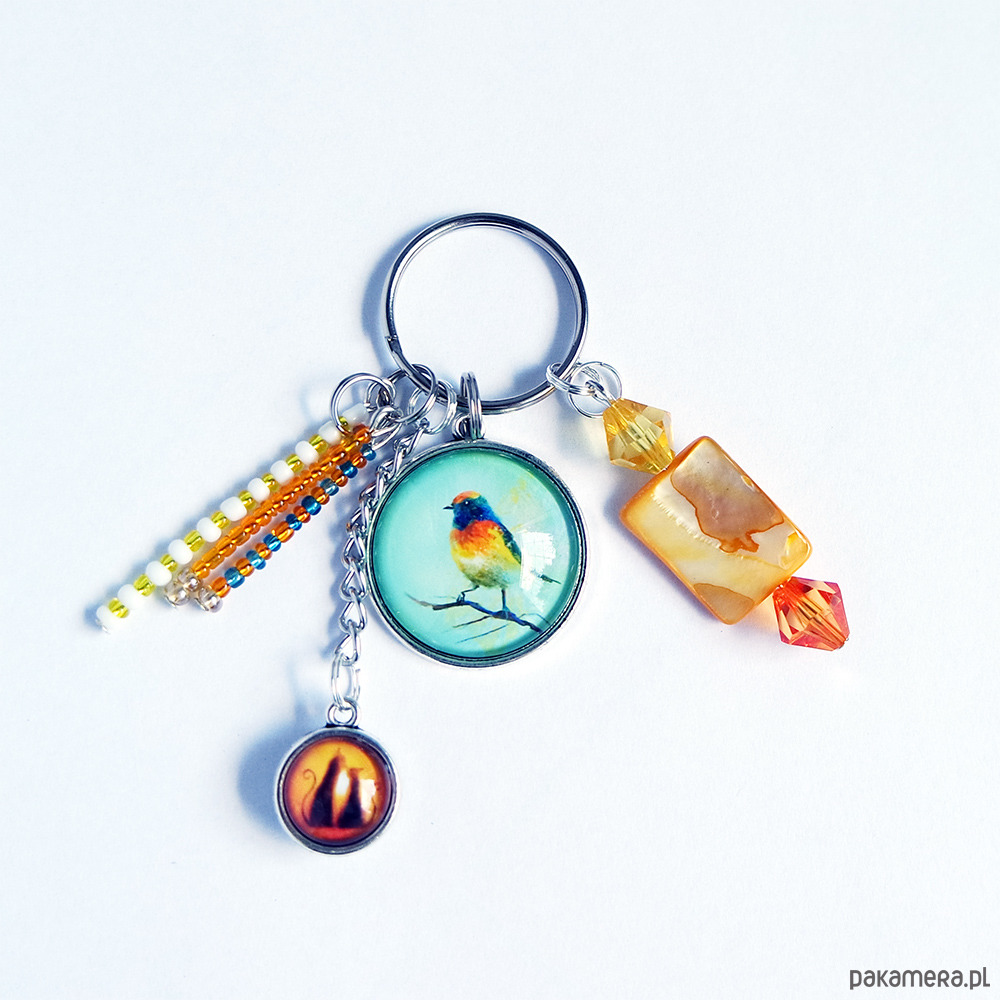 Niezwykły brelok z naszymi autorskimi grafikami oraz kompozycją z koralików i koralika z masy perłowej.