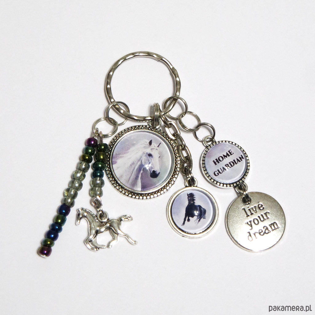 Niezwykły brelok z naszymi autorskimi grafikami oraz kompozycją z koralików i zawieszkami.
