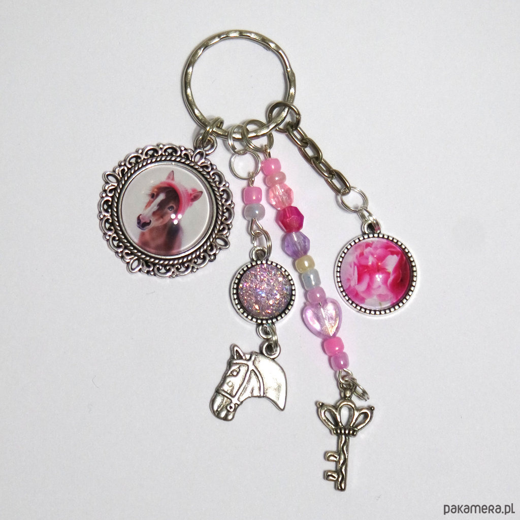 Niezwykły brelok z naszymi autorskimi grafikami, kaboszonem druzy z żywicy, kompozycją z koralików oraz zawieszkami.