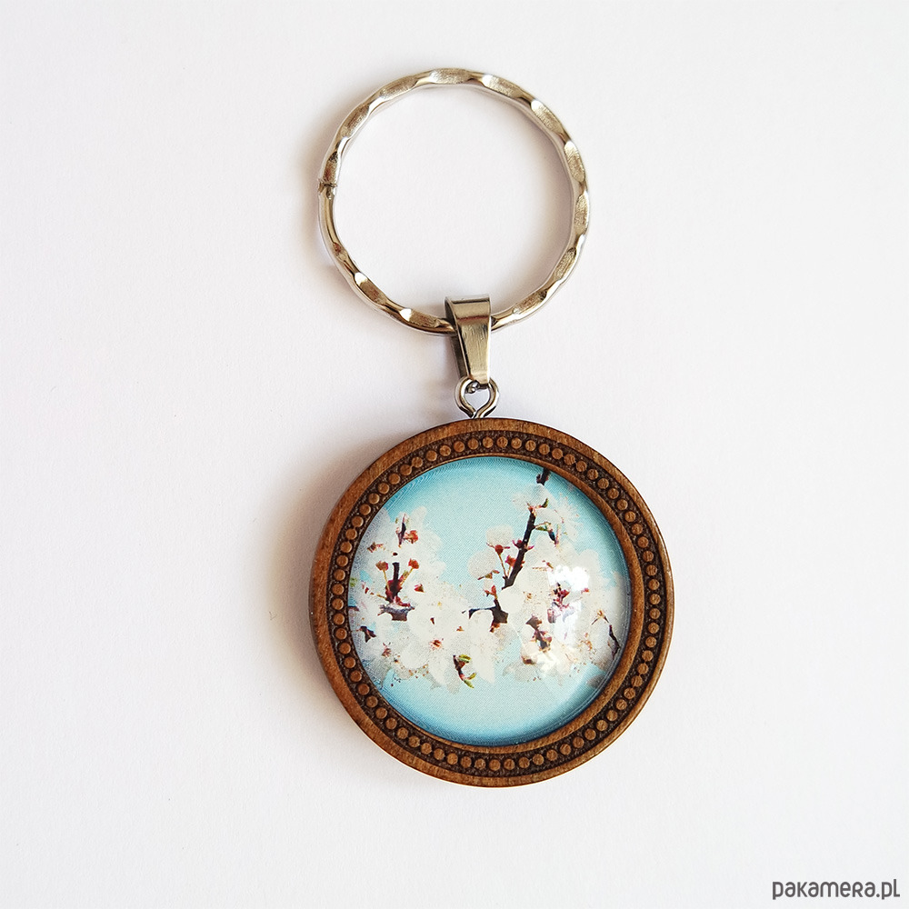 Unikatowy brelok w drewnianej oprawie z naszą autorską grafiką.