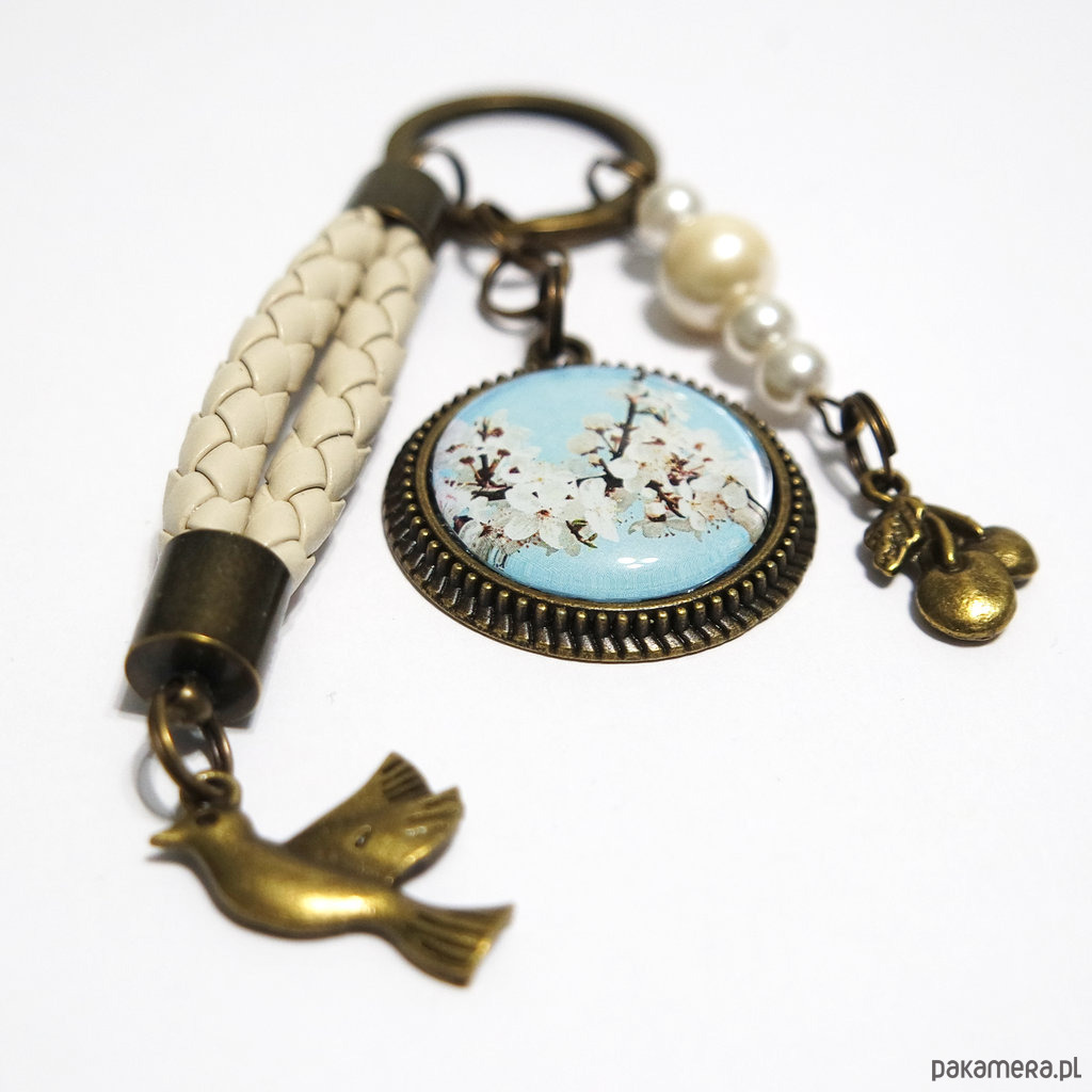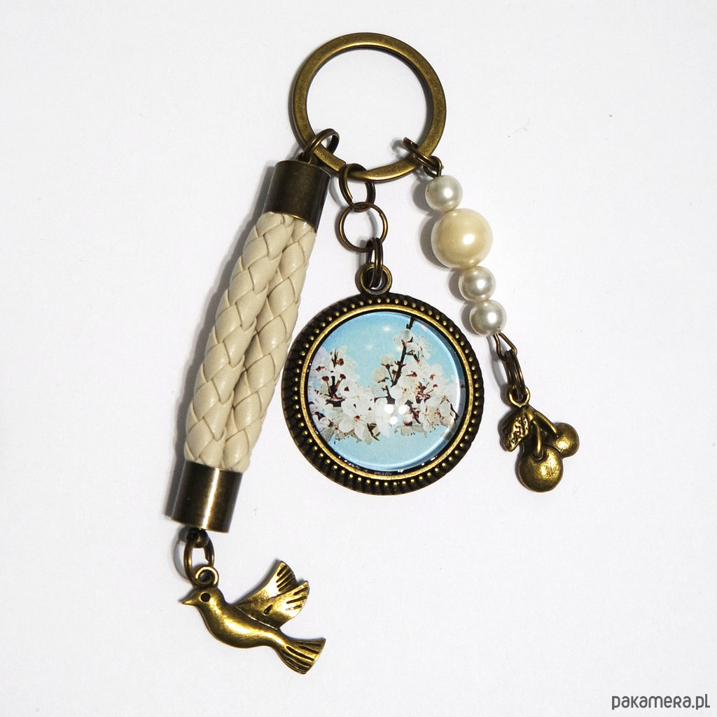 Niezwykły brelok z naszą autorską grafiką, kompozycją z koralików oraz zawieszkami i rzemieniem plecionym z ekoskóry.