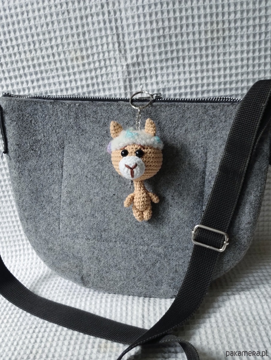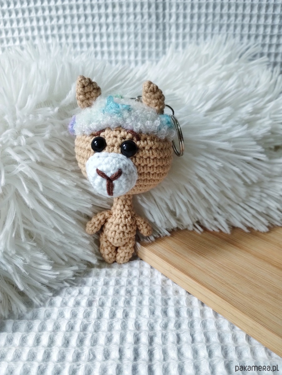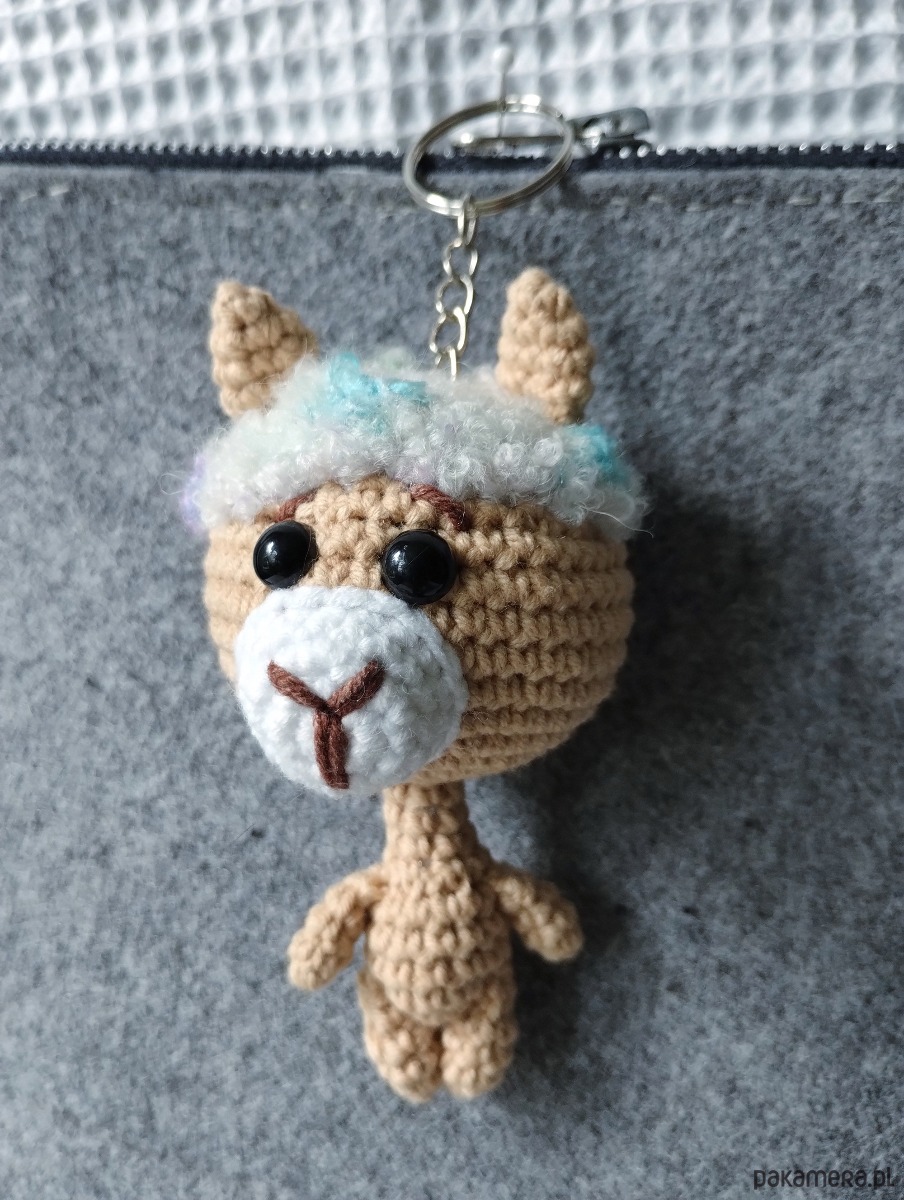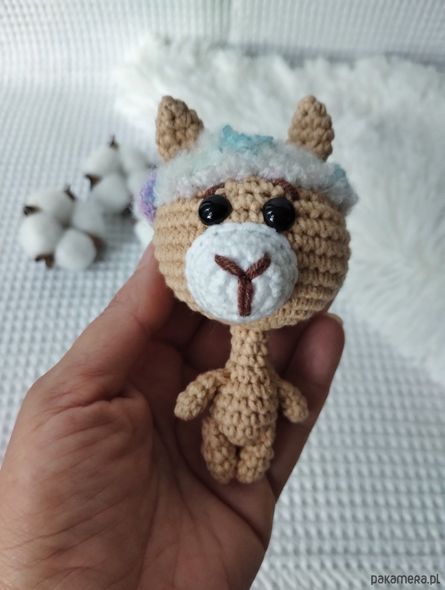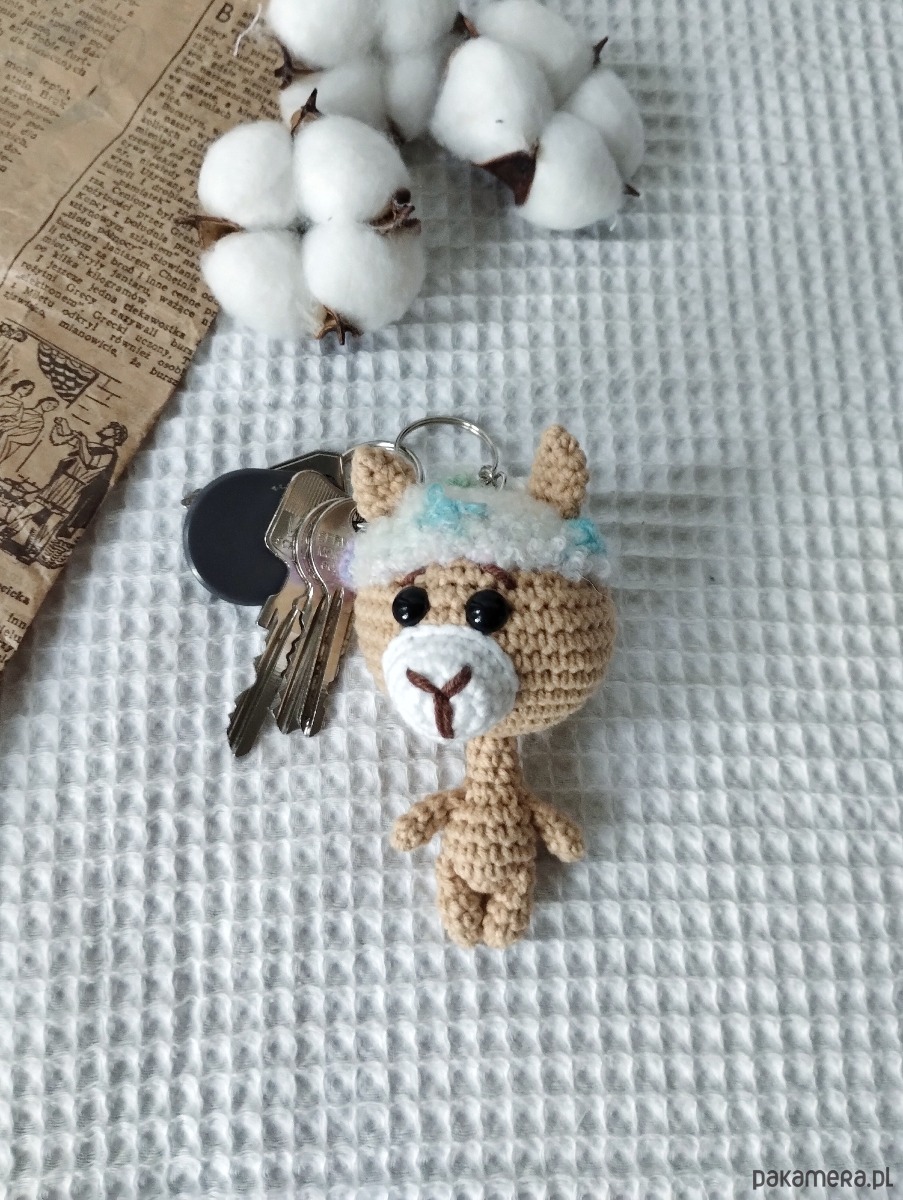 A lama mimo, że nie jest wielka, wszystko ma na swoim miejscu ;) sympatyczną mordkę, puchatą główkę i beżowe ciałko. Jej wielkość to ok 11 cm (razem z uszkami)+ łańcuszek i kółeczko.