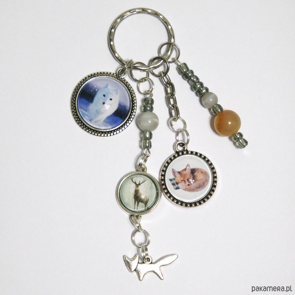 Niezwykły brelok z naszymi autorskimi grafikami oraz kompozycją z koralików i zawieszką.