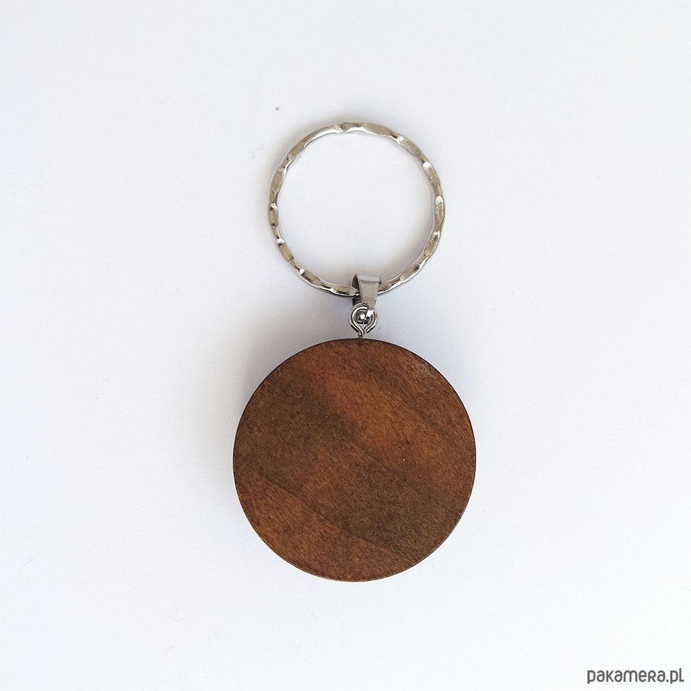 Unikatowy brelok w drewnianej oprawie z naszą autorską grafiką.