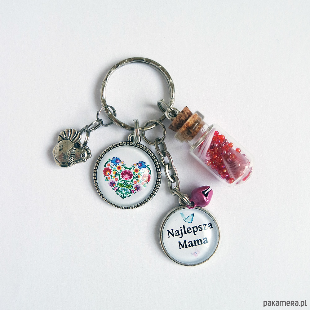 Breloczek - Mama, serce ludowe, fiolka