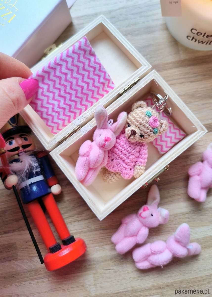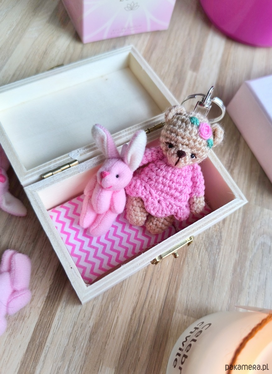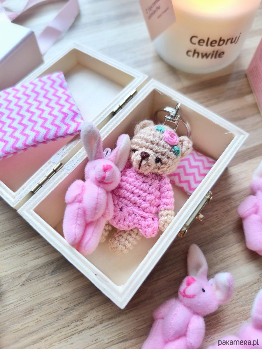 Breloczek Miś Różyczka brelok zestaw szkatułka, króliczek i pościel