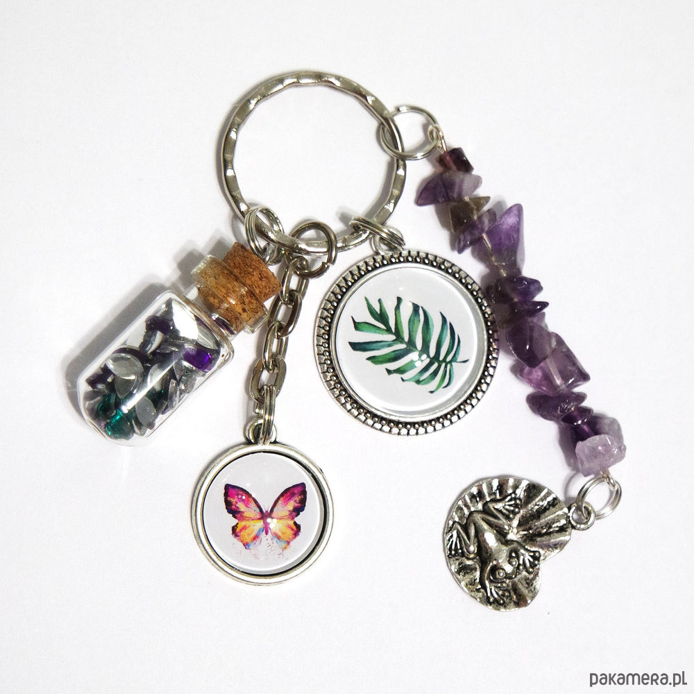 Breloczek - Monstera, motyl, fiolka, ametyst