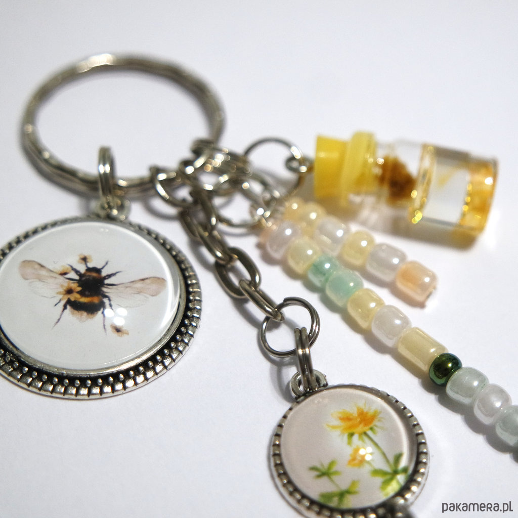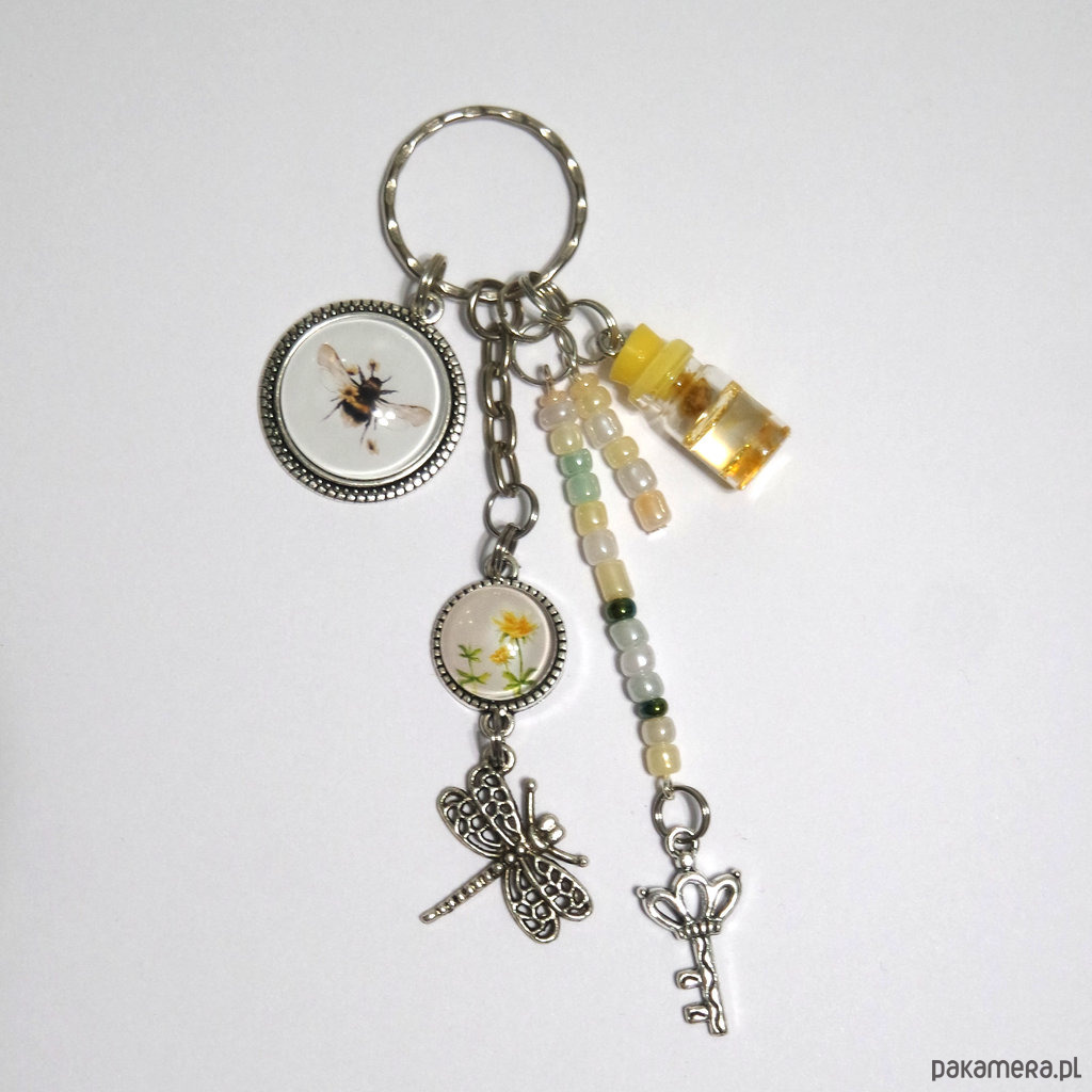 Breloczek - pszczoła, wiesiołek, ważka, fiolka