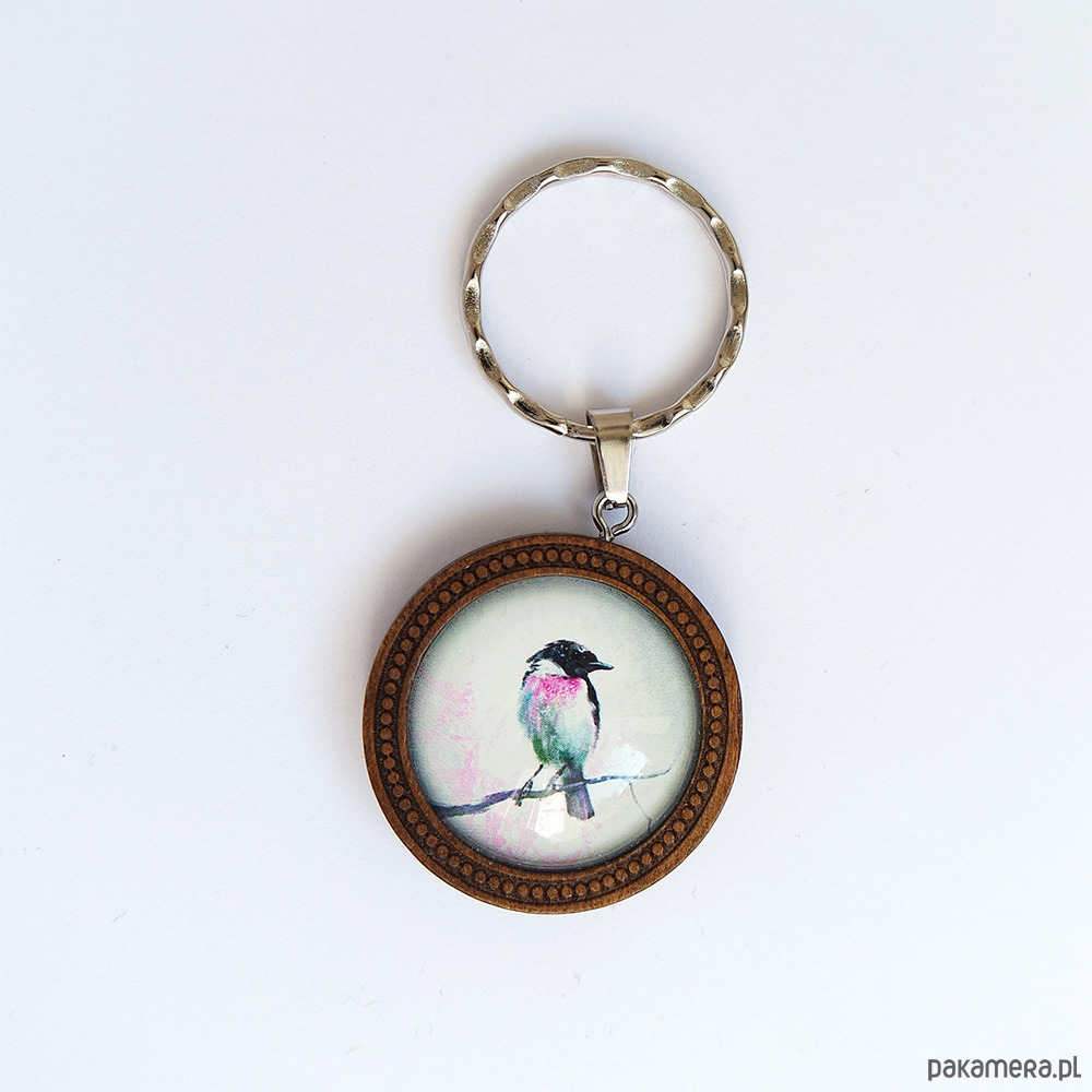 Unikatowy brelok w drewnianej oprawie z naszą autorską grafiką.