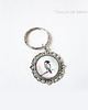 Grafika ukryta w pięknie zdobionym breloczku, pod osłoną przeźroczystego półokrągłego szkiełka.