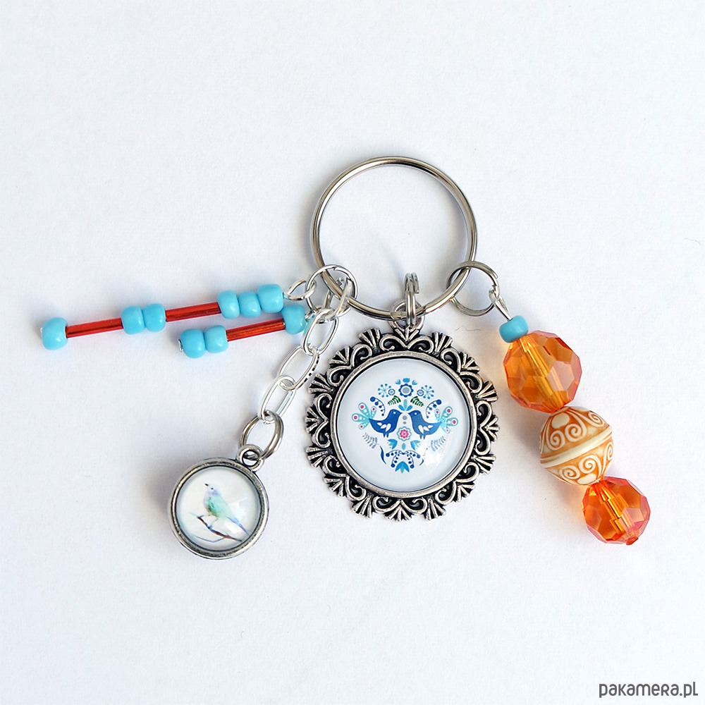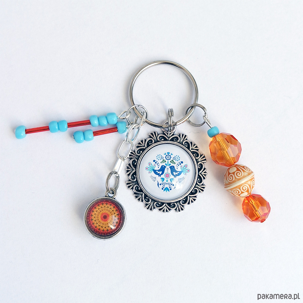 Niezwykły brelok z naszymi autorskimi grafikami oraz kompozycją z koralików.