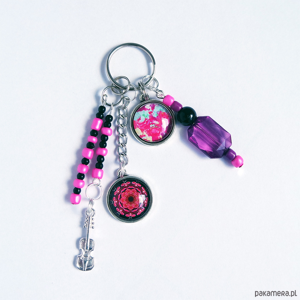 Niezwykły brelok z naszymi autorskimi grafikami oraz kompozycją z koralików i zawieszką.