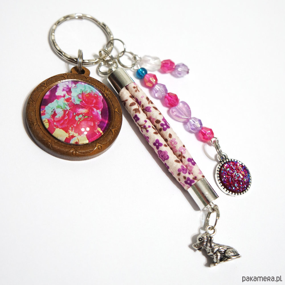 Breloczek - Róże, rzemień, pies - drewniany