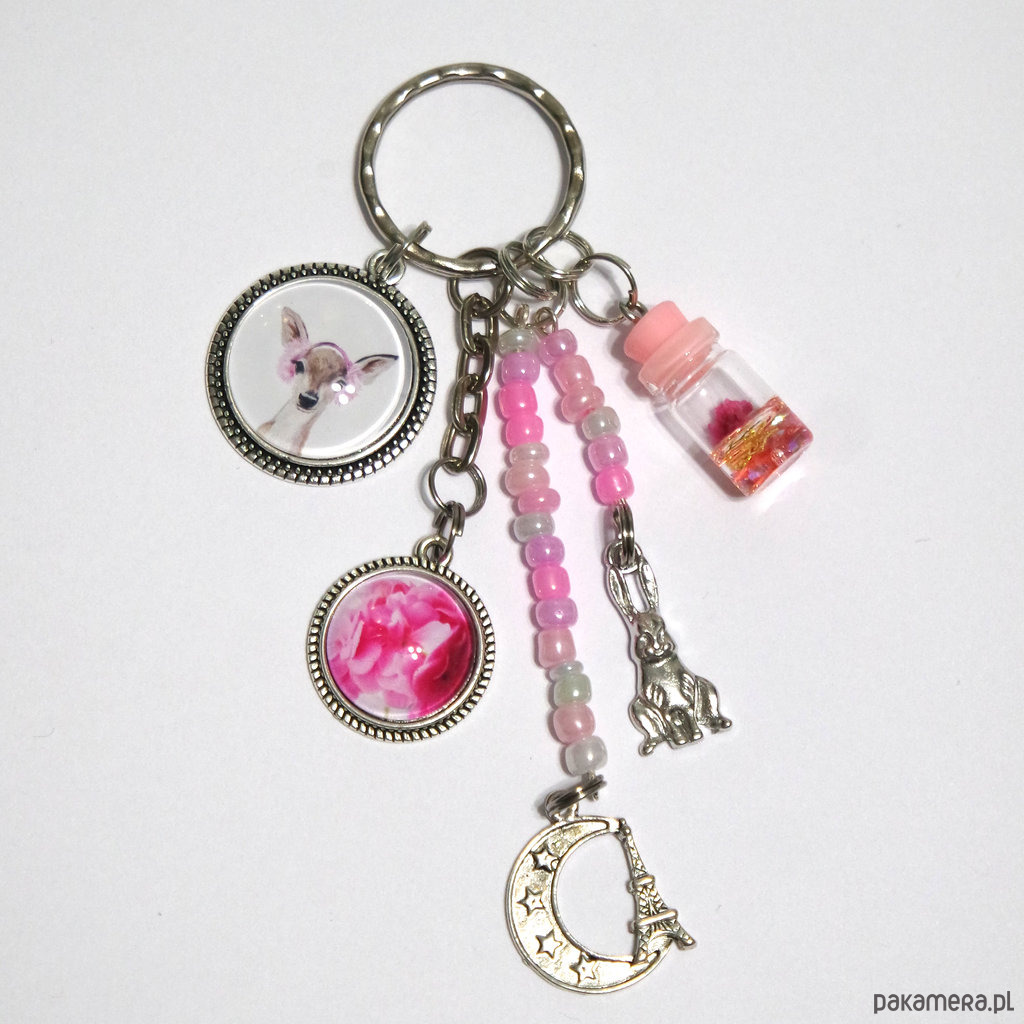 Breloczek - Sarenka, pelargonia, księżyc, fiolka