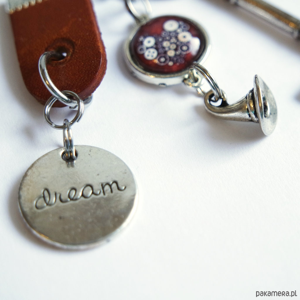 Niezwykły brelok z naszymi autorskimi grafikami oraz skórzanym rzemieniem z zawieszką.