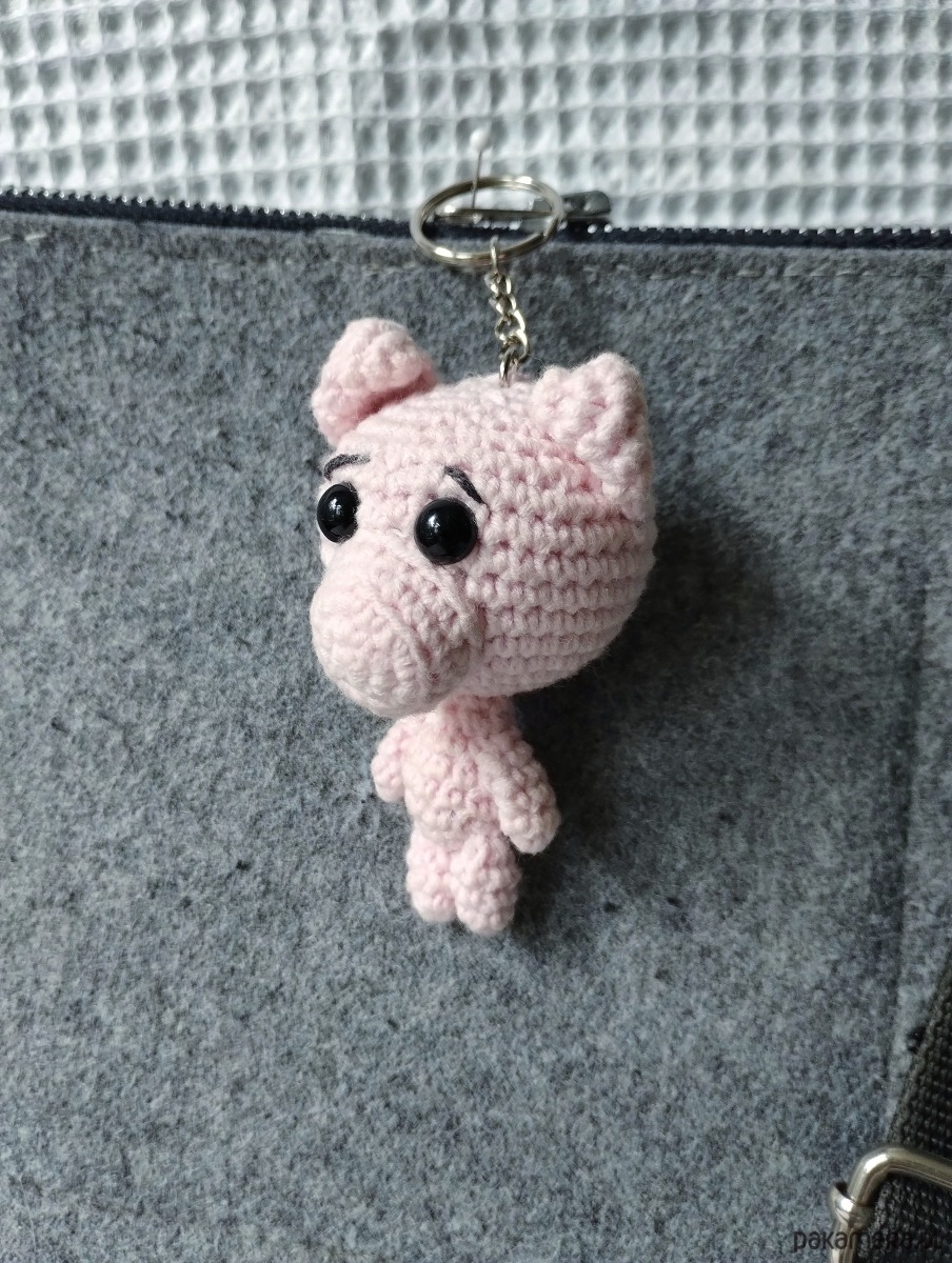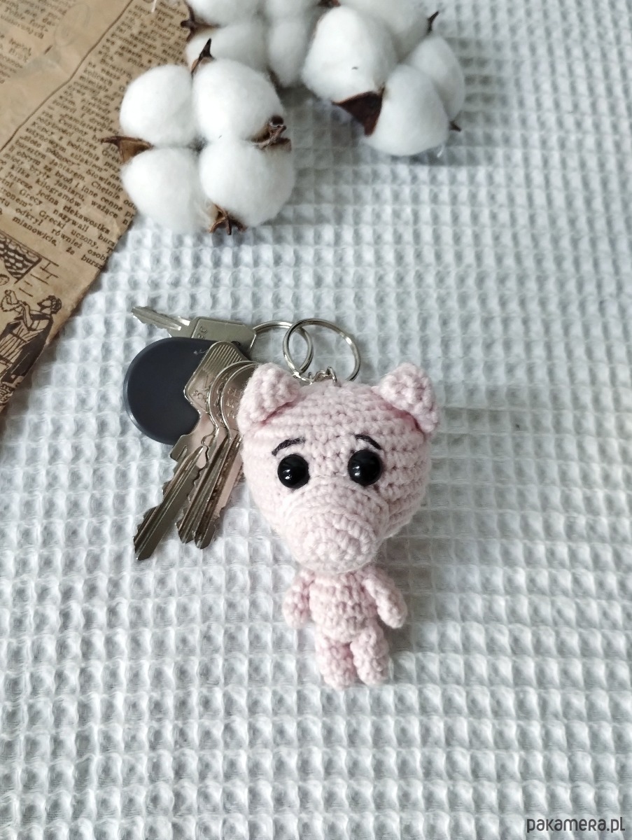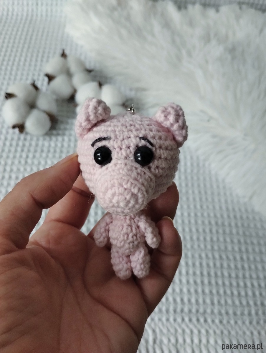 A świnka mimo, że nie jest wielka, wszystko ma na swoim miejscu ;) ryjek, oklapnięte uszka i zakręcony ogonek. Jej wielkość to ok 9,5 cm + łańcuszek i kółeczko.
