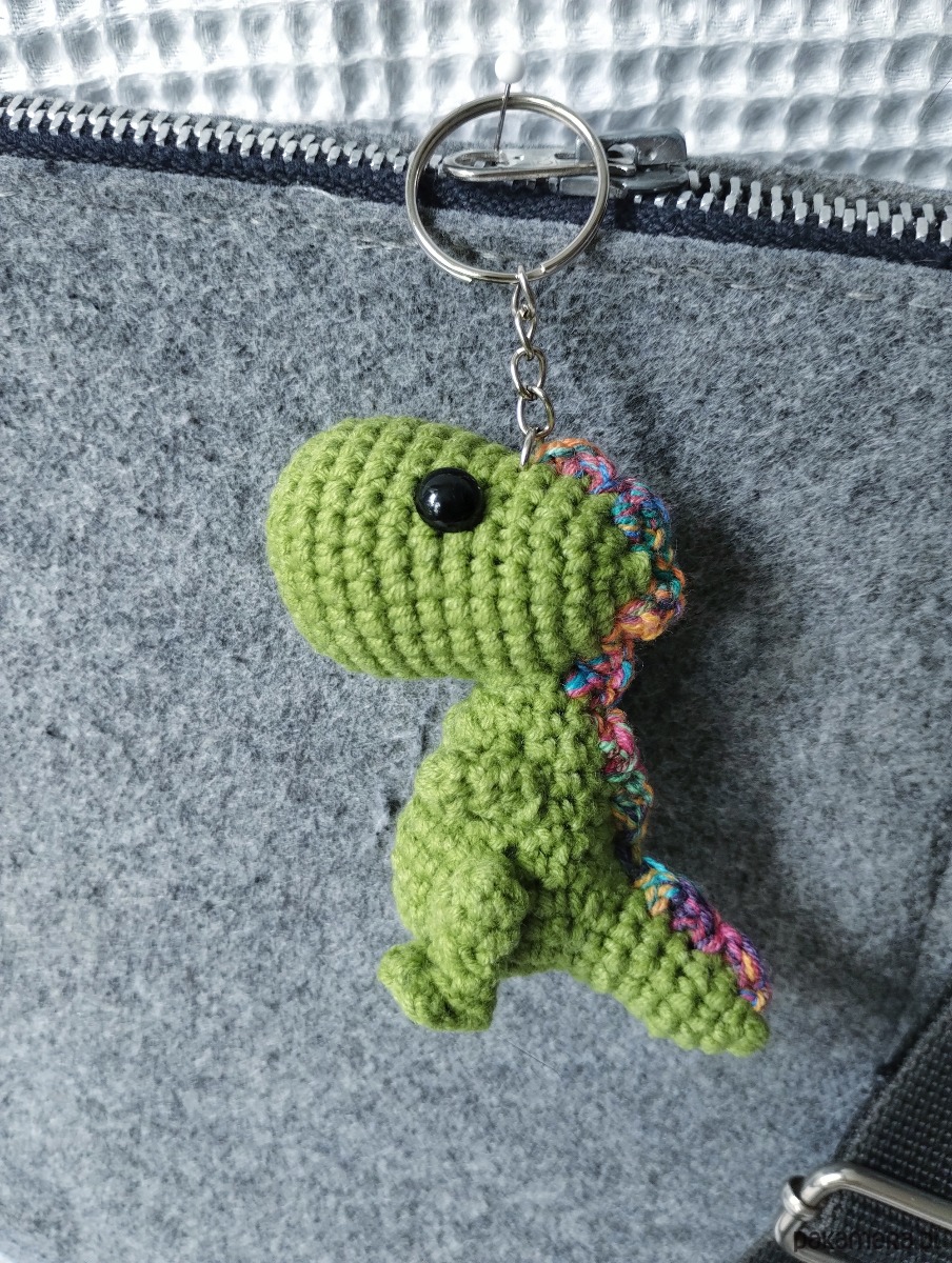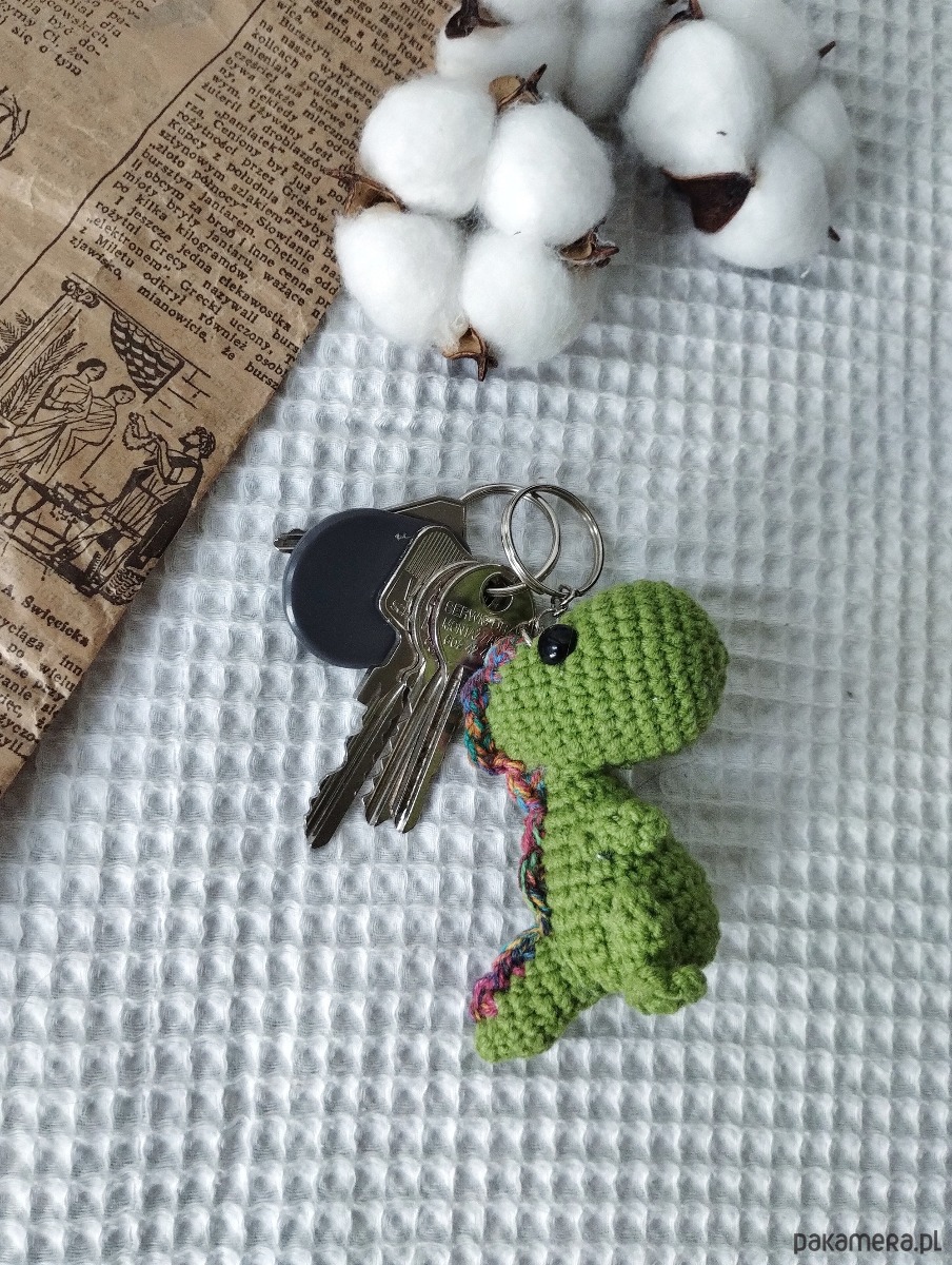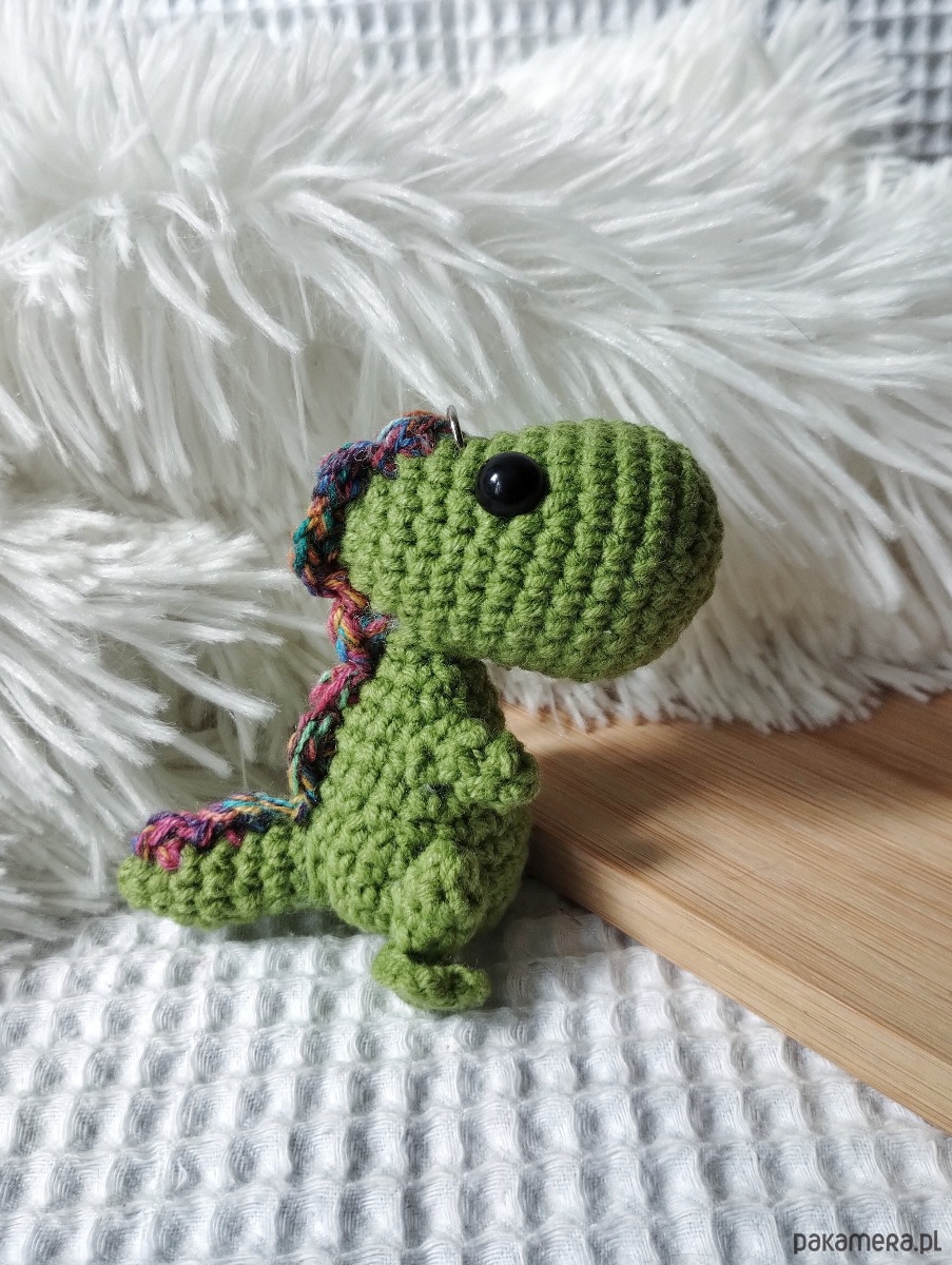 Wyjątkowość zwierzątka polega również na tym, że jest ono stworzone na podstawie wzoru opracowanego przeze mnie. Wiesz, że spotkanie drugiego takiego samego breloczka jest prawie niemożliwe, bo nawet gdy wykonam drugą z tego samego wzoru nie będzie on identyczny. Wzór na tego tyreanozaura stworzyłam od podstaw.