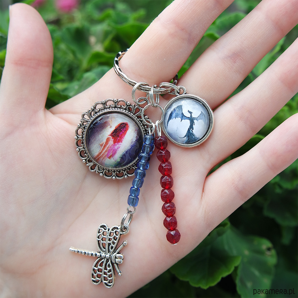 Niezwykły brelok z naszymi autorskimi grafikami oraz kompozycją z koralików i zawieszką.