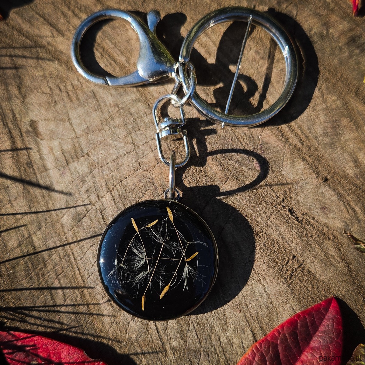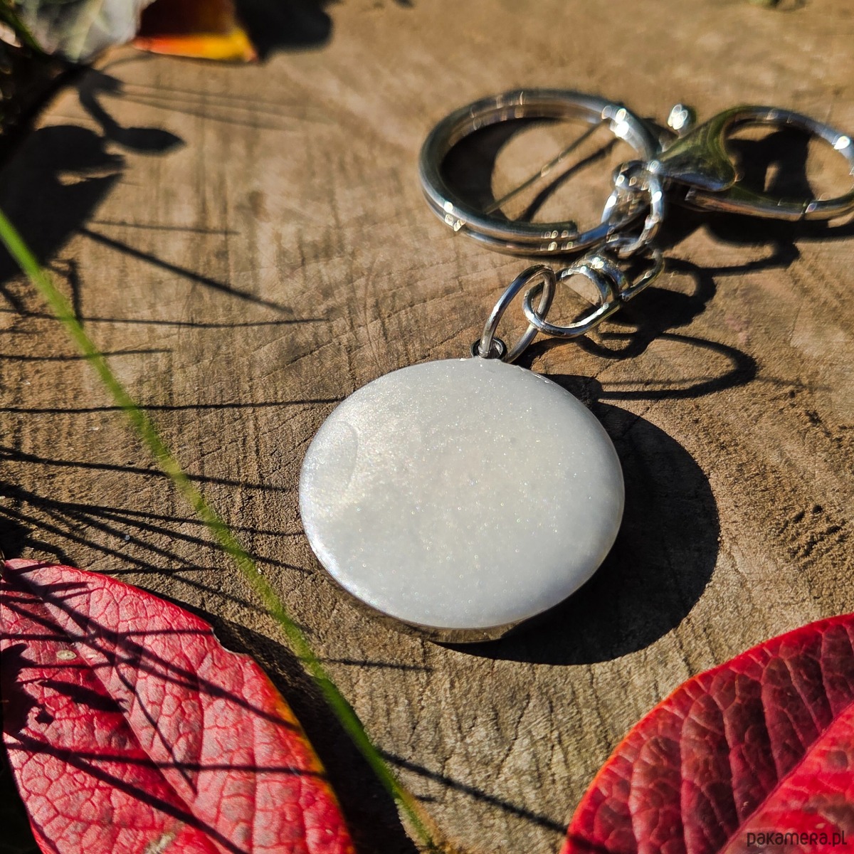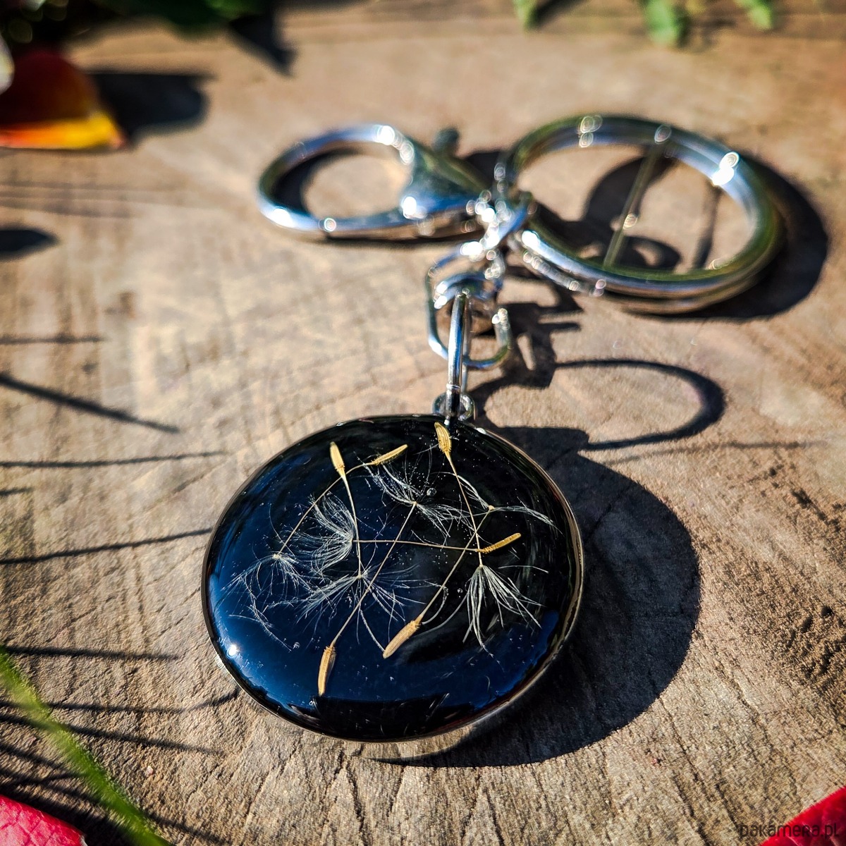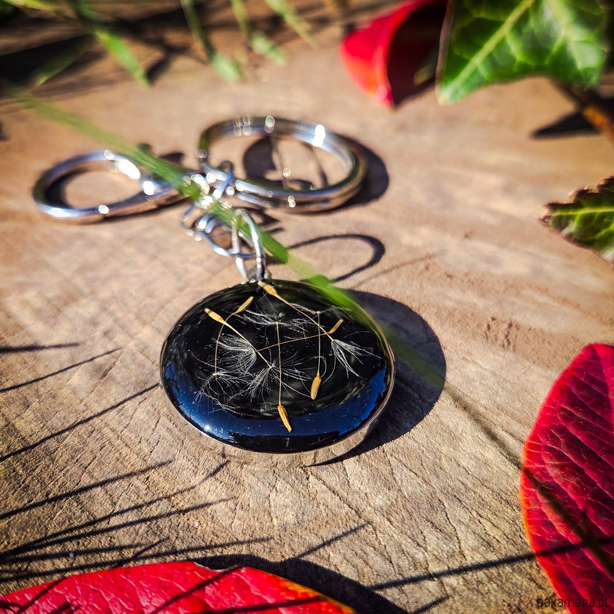 Breloczek z dmuchawcem zatopionym w żywicy epoksydowej.