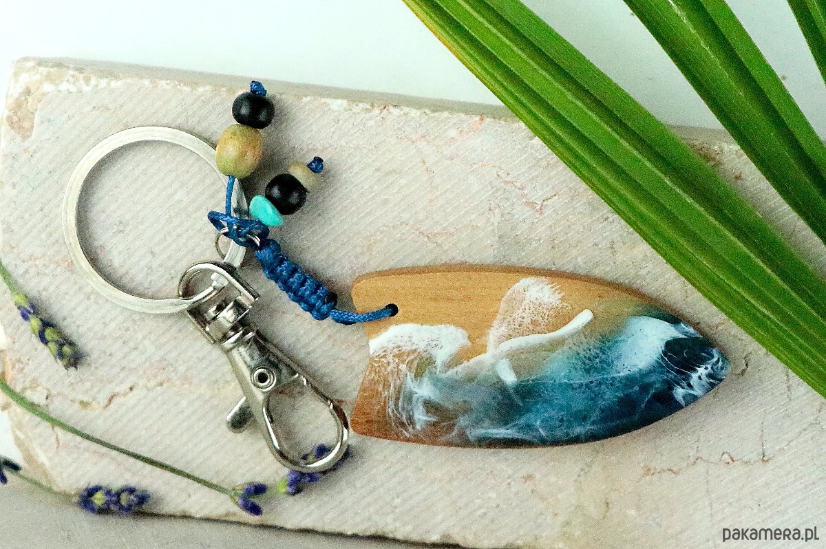 Breloczek z naturalnego drewna oliwnego w kształcie deski surfingowej . Malowany żywicą. Sprawdzi się idealnie jako dodatek do Twoich kluczy, torebki czy plecaka, będzie też świetnym pomysłem na prezent. Wykonany w 100% HANDMADE przez nas, co sprawia, że jest oryginalny i niepowtarzalny.